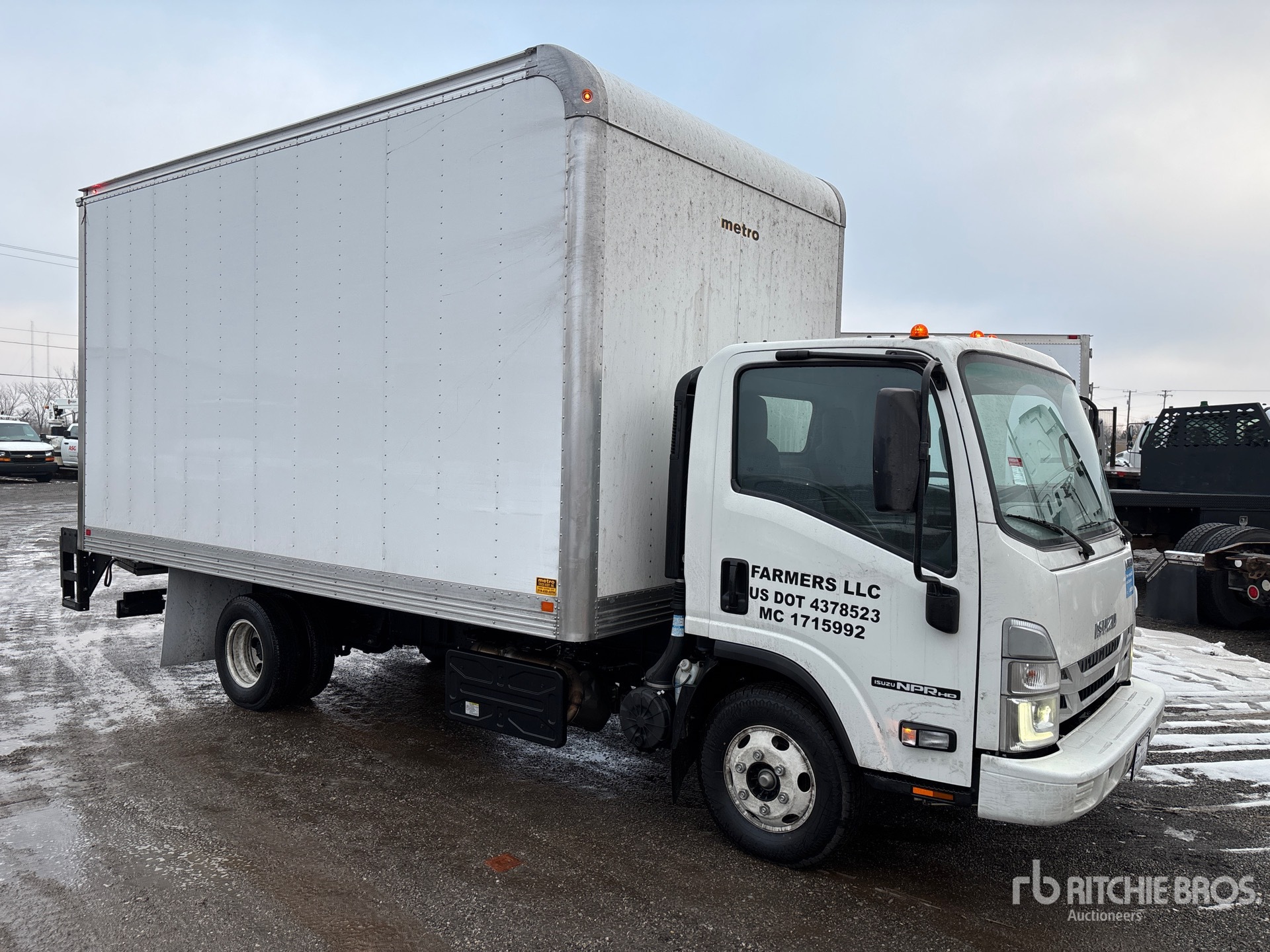 Isuzu 4HK1TC 4 Cylinder 317 cid Diesel 210 hp Engine, 2022 US EPA Label, Requires Diesel Exhaust Fluid, 462 Engine hrs, Exhaust Brake, Automatic Transmission, 5360 lb Front Axle, 9880 lb Rears, 14500 lb GVWR, 215/85R16, Spring Suspension, 149 in Wheelbase, Metro 16 ft x 102 in Wide x 96 in High Body, Liftgate