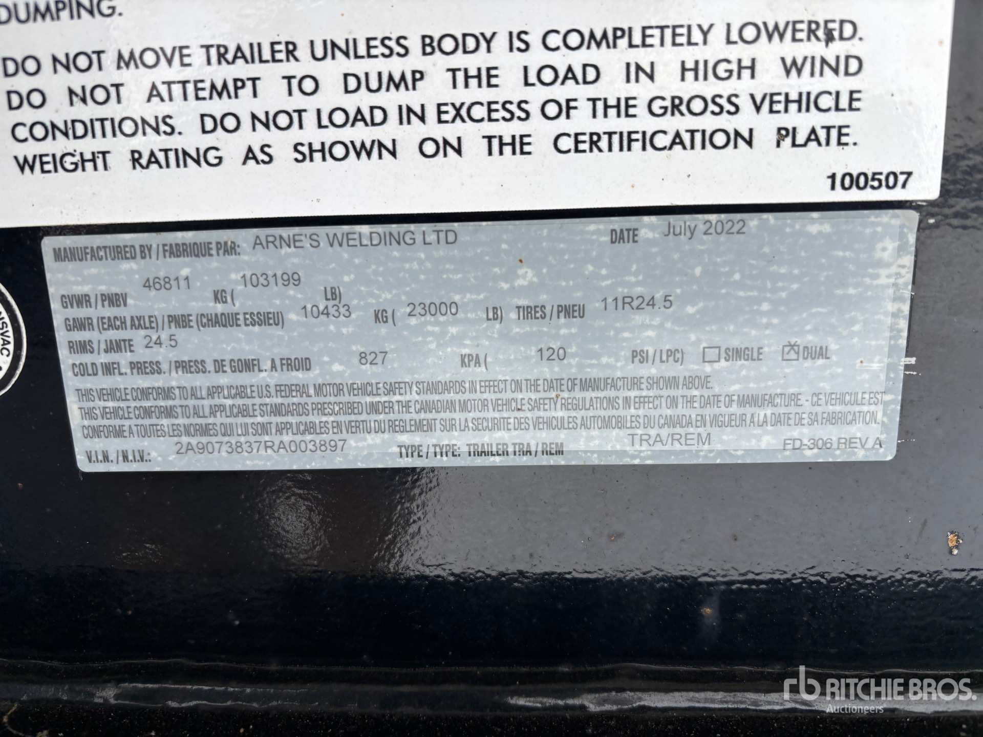 The detailed equipment information is limited in scope, and Ritchie Bros. Auctioneers has not inspected any aspects or components of the equipment other than those expressly set forth herein. Unless expressly stated, we make no representations or warranties, express or implied, concerning the equipment or its components, including without limitation any representations or warranties concerning functionality, conformity or compliance with any safety standard or requirement of any applicable authority or regulatory body, fitness for any particular purpose, or merchantability. You are strongly advised to perform your own detailed inspection of the equipment prior to bidding.