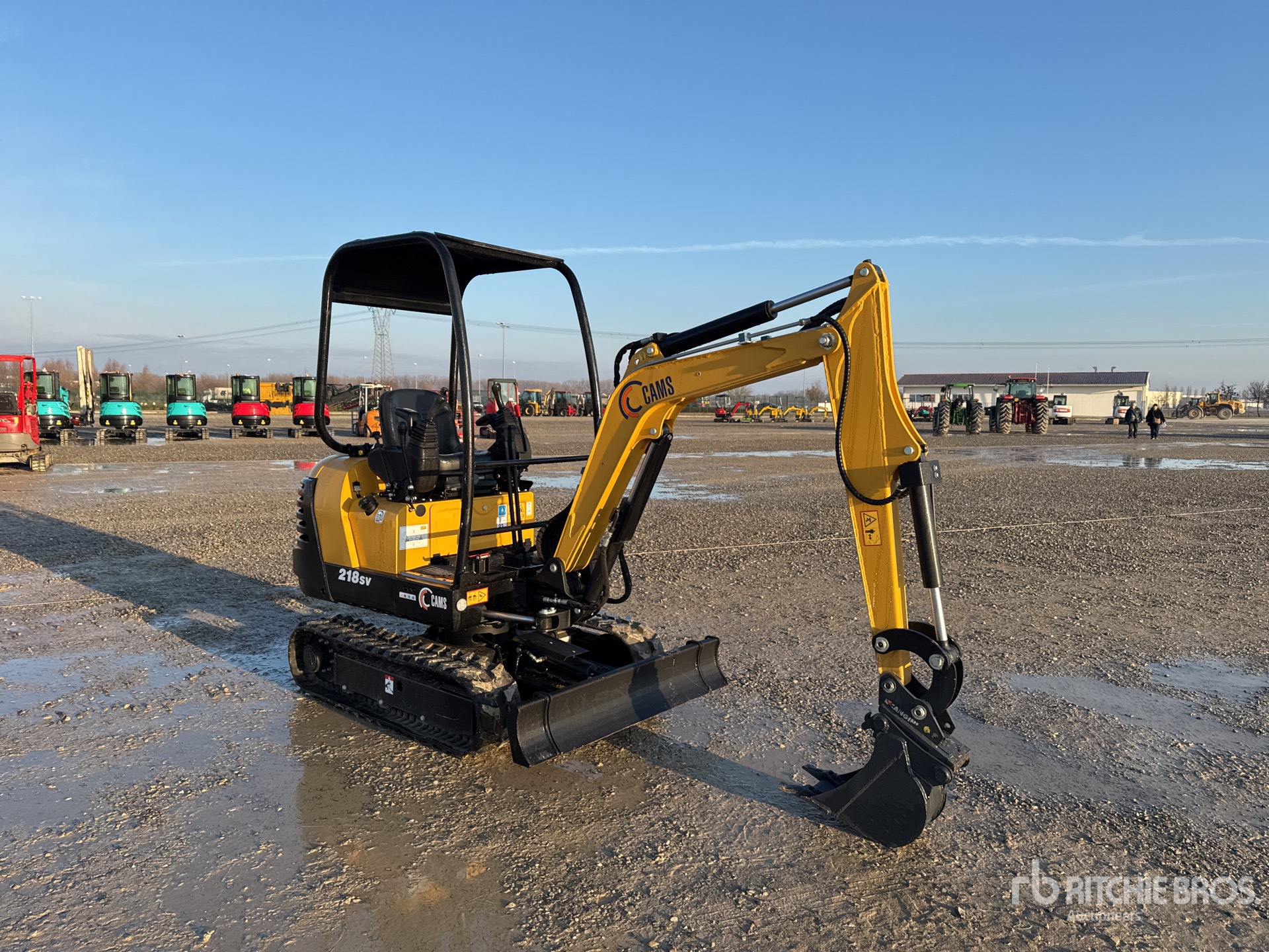 Swing Boom, 1200 mm Stick, Auxiliary Hydraulic Plumbing, Backfill Blade, 230 mm Rubber Tracks, Expandable Width Tracks, Manual Quick Coupler, 200 mm Digging Bucket, no keys for the engine bonnet