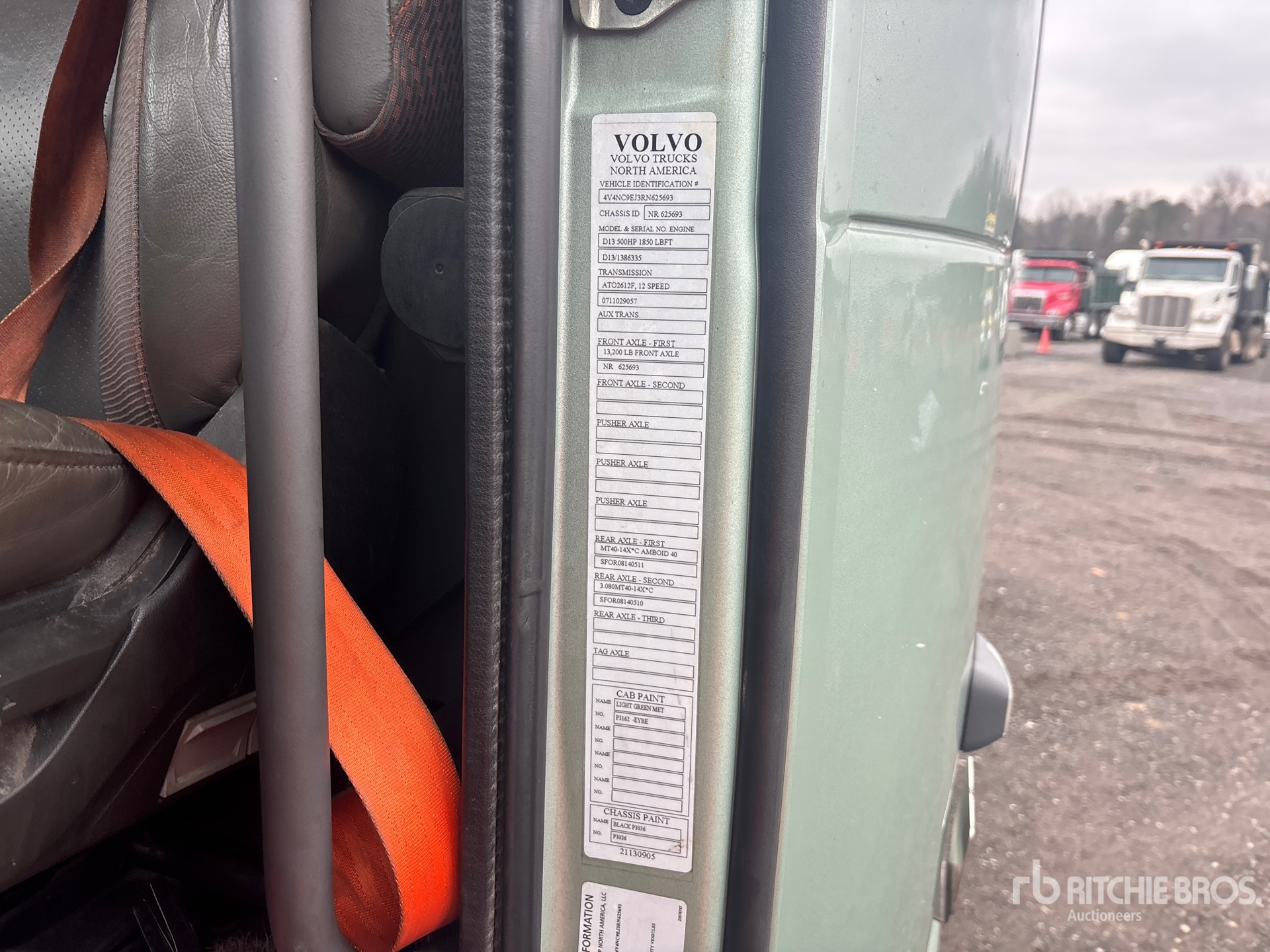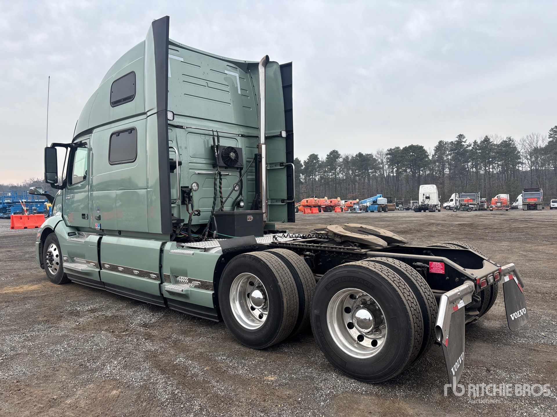 Volvo D13N 500 hp Engine, 2023 US EPA Label, 5833 Engine hrs, Volvo ATO2612F 12-Speed Automated Transmission, 13200 lb Front Axle, 40000 lb Rears, 53200 lb GVWR, Engine Brake, 77 in High Rise Sleeper Cab, Bunk Beds, 246 in Wheelbase, Air Suspension, Aluminum Wheels, 295/75R22.5, Air Sliding 5th Wheel, Dual Fuel Tanks