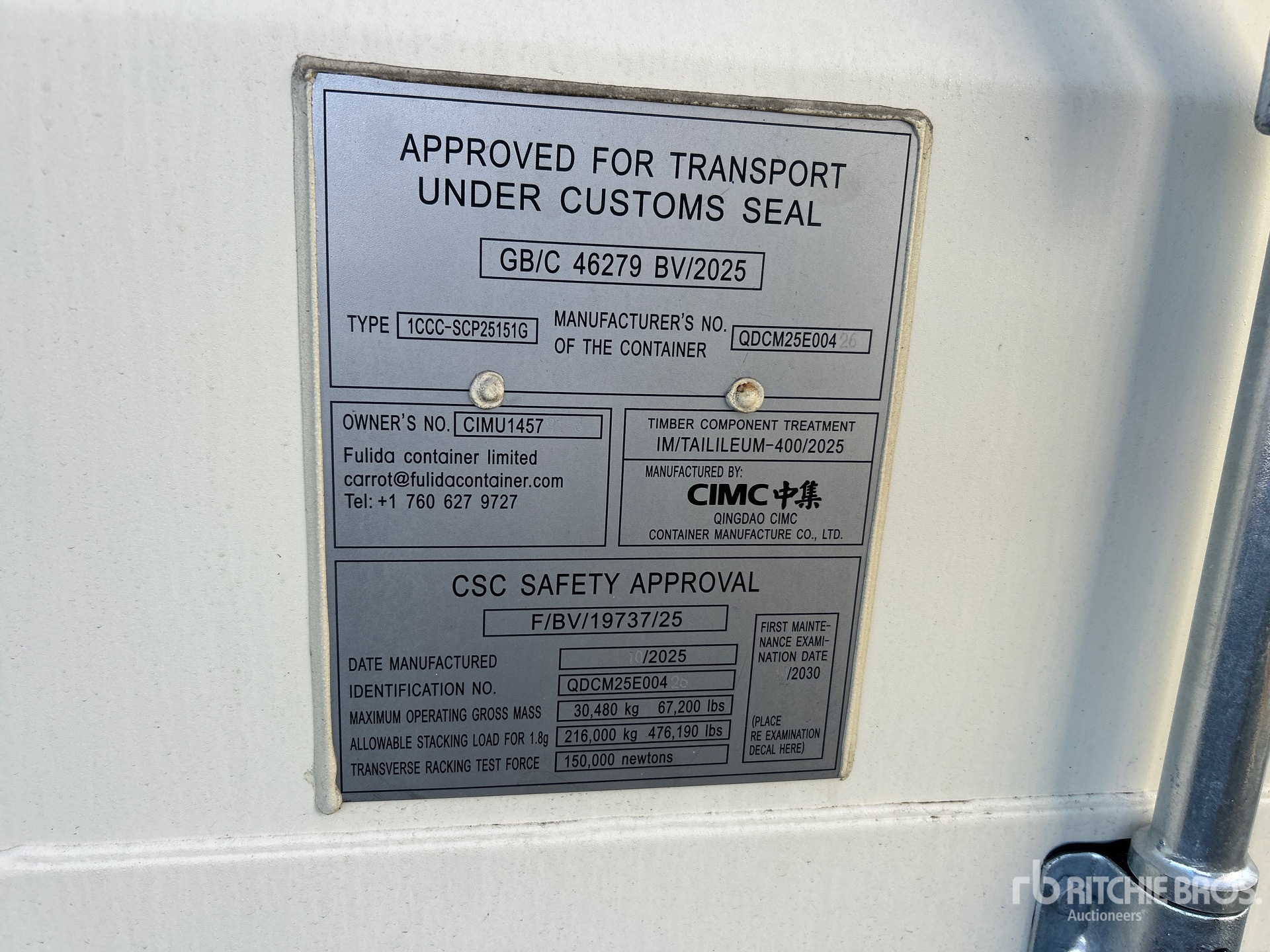 A qualified Ritchie Bros. employee collected detailed equipment information and performed functional tests on the key components of this asset. You, or a proxy, may also inspect any items on site prior to bidding on auction day.