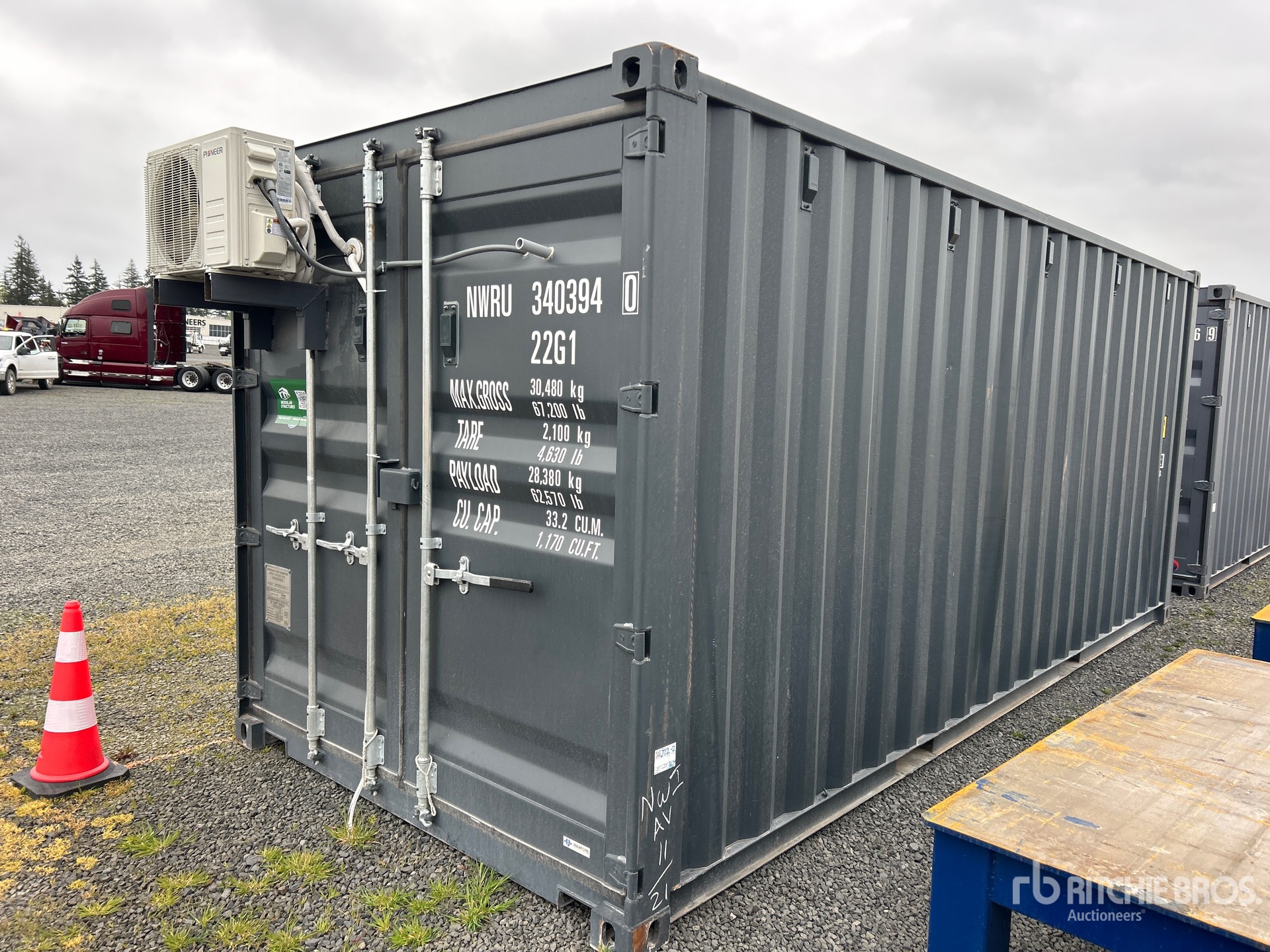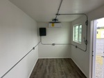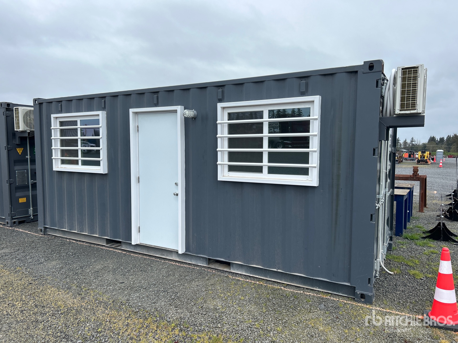 Air Conditioner, 20' x 8', 8' 6" High, (1) Swing-Out Door, (2) Windows w/Security Bars, Fork Pockets, Laminate Flooring, SunScreen, R13 Insulation, (1) Pioneer HVAC Mini-Split, (1) Electric Panel, LED Ceiling Lights, Interior Outlets, Wiring done to National Electric Code (NEC)