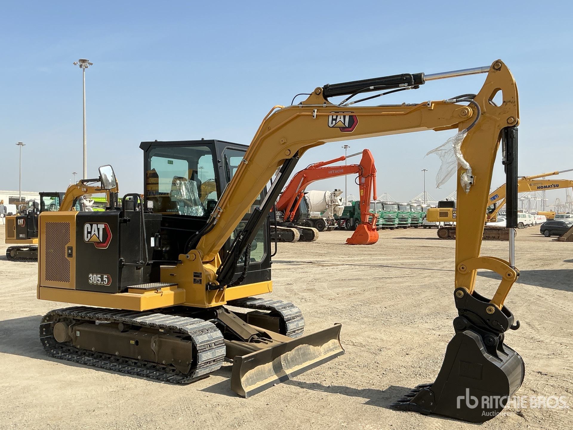 Enclosed Cab, Air Conditioner, 1500 mm Stick, Auxiliary Hydraulic Plumbing, Backfill Blade, 400 mm Triple Grouser Track Shoes w/Rubber Inserts, Manual Quick Coupler, 760 mm Digging Bucket