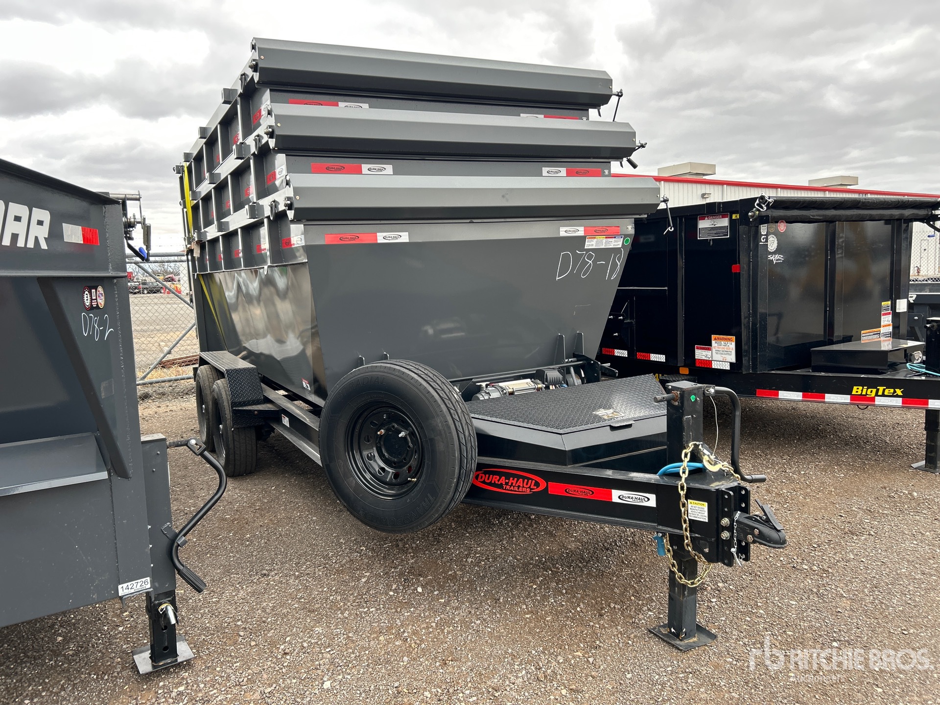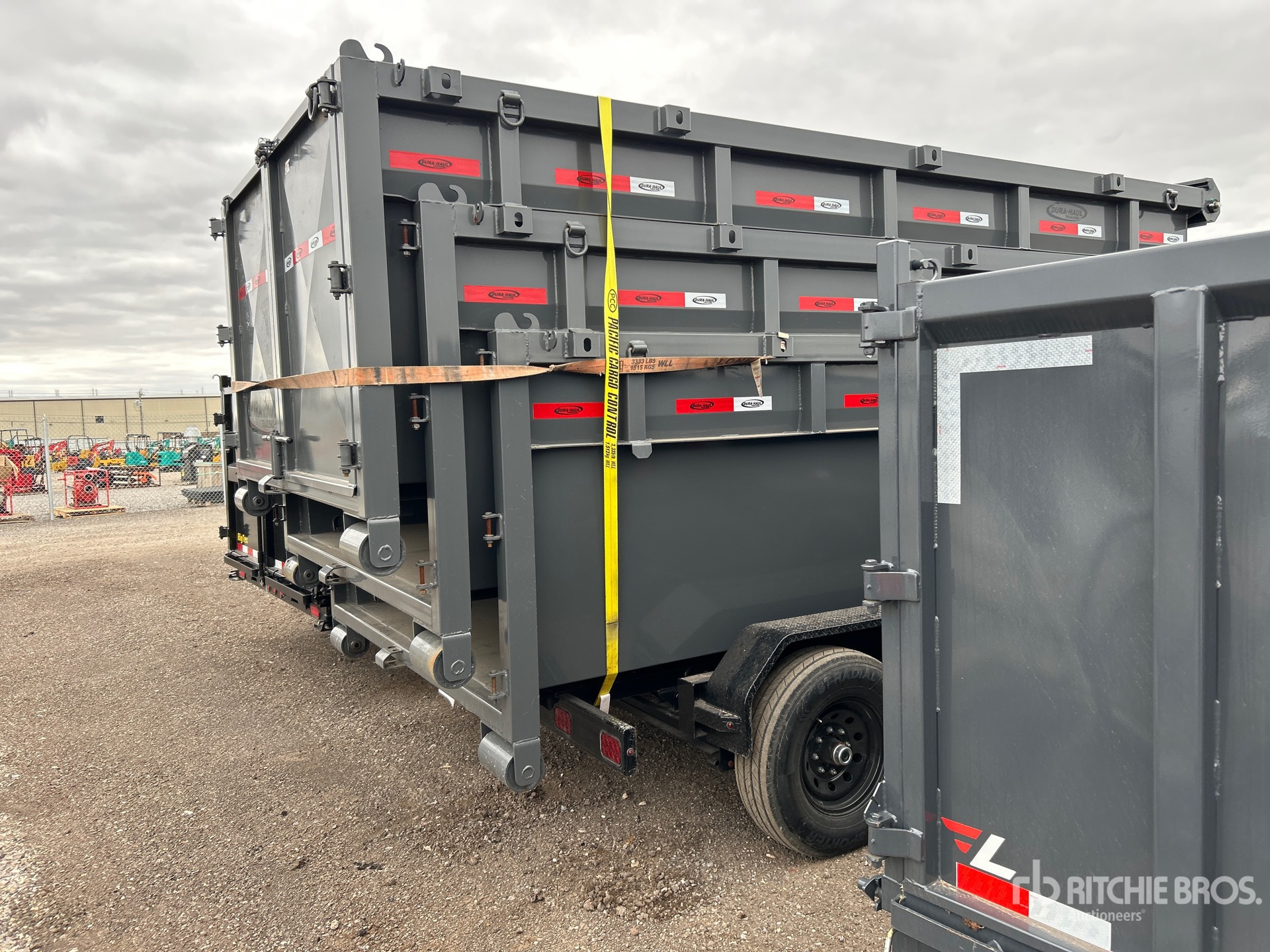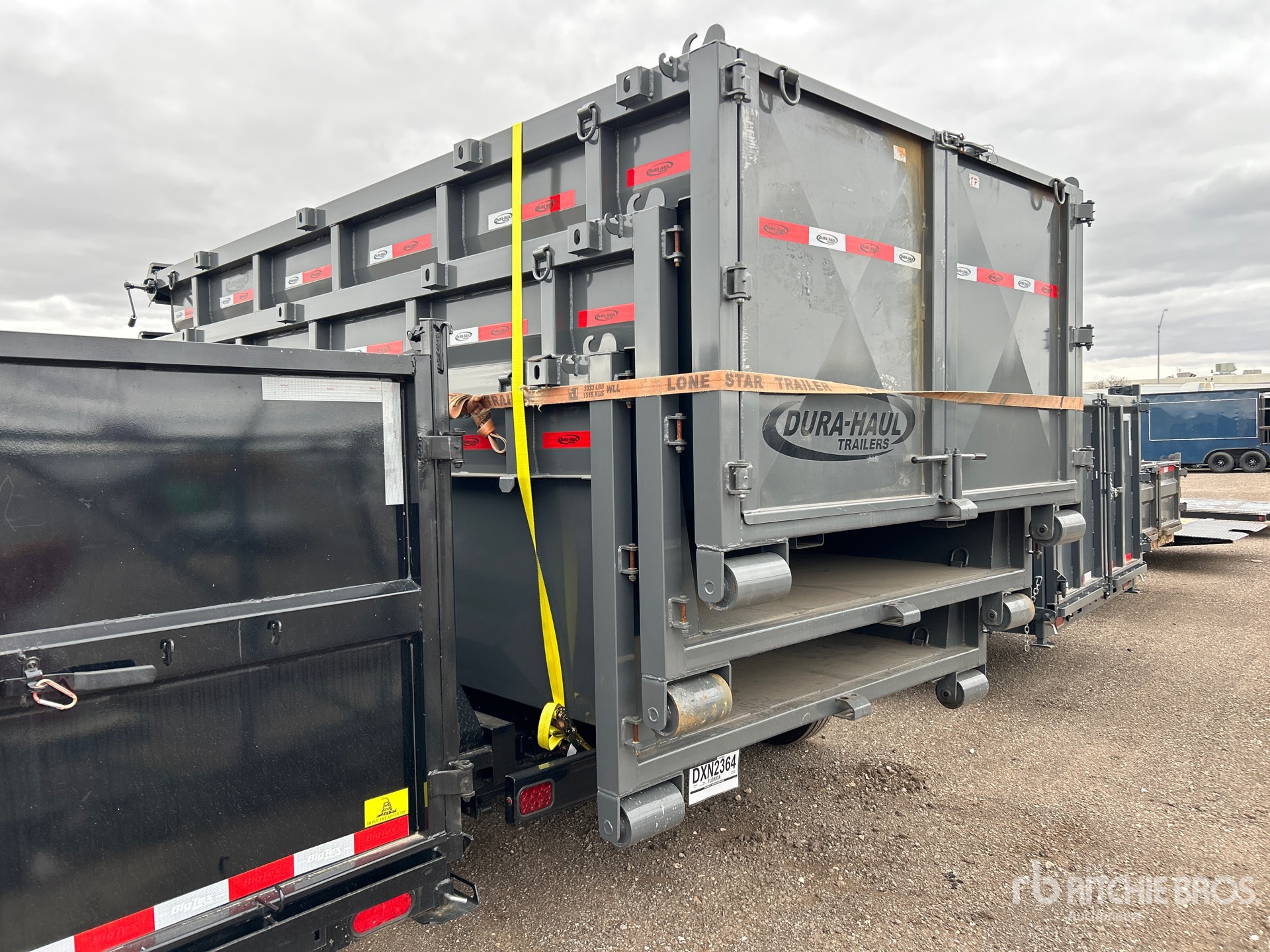 Ball Hitch, Spring Suspension, Electric Brakes, Dura-Haul Trailers Roll-Off Unit Manual Roll Tarp, 235/80R16 Tires, 14000 lb GVWR, Qty (3) Roll offs