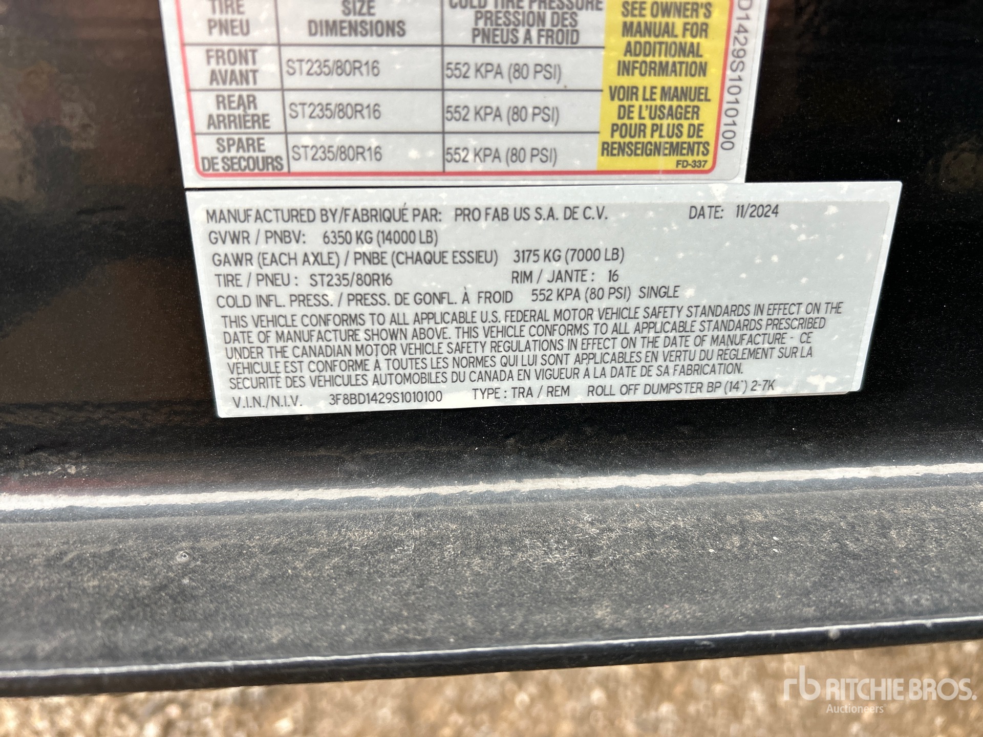 The detailed equipment information is limited in scope, and Ritchie Bros. Auctioneers has not inspected any aspects or components of the equipment other than those expressly set forth herein. Unless expressly stated, we make no representations or warranties, express or implied, concerning the equipment or its components, including without limitation any representations or warranties concerning functionality, conformity or compliance with any safety standard or requirement of any applicable authority or regulatory body, fitness for any particular purpose, or merchantability. You are strongly advised to perform your own detailed inspection of the equipment prior to bidding.