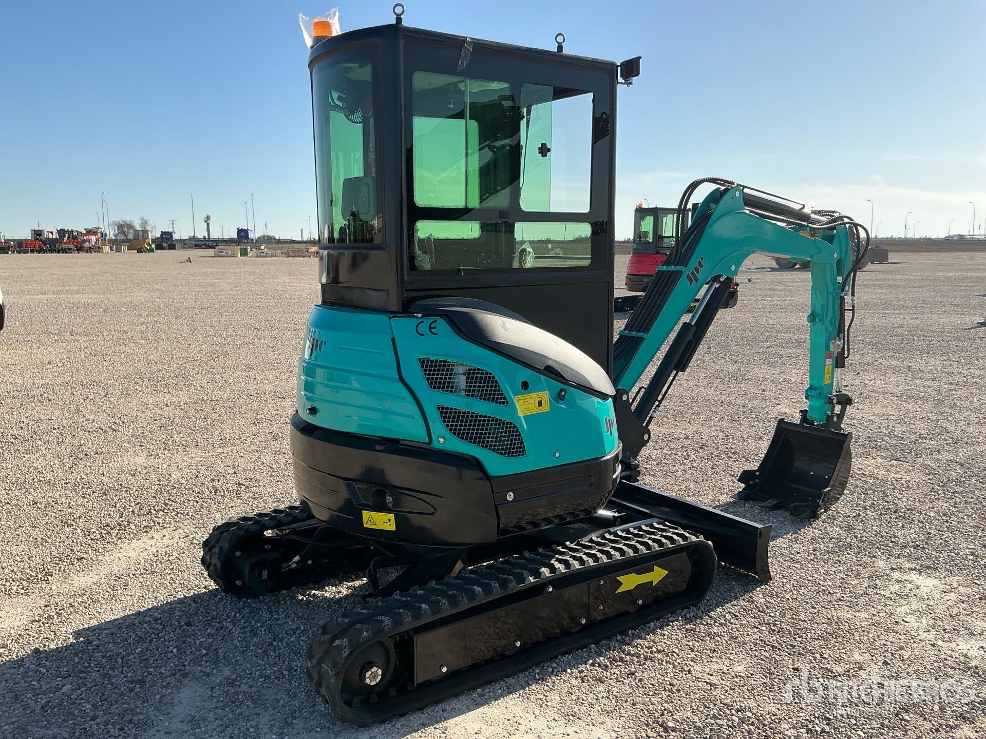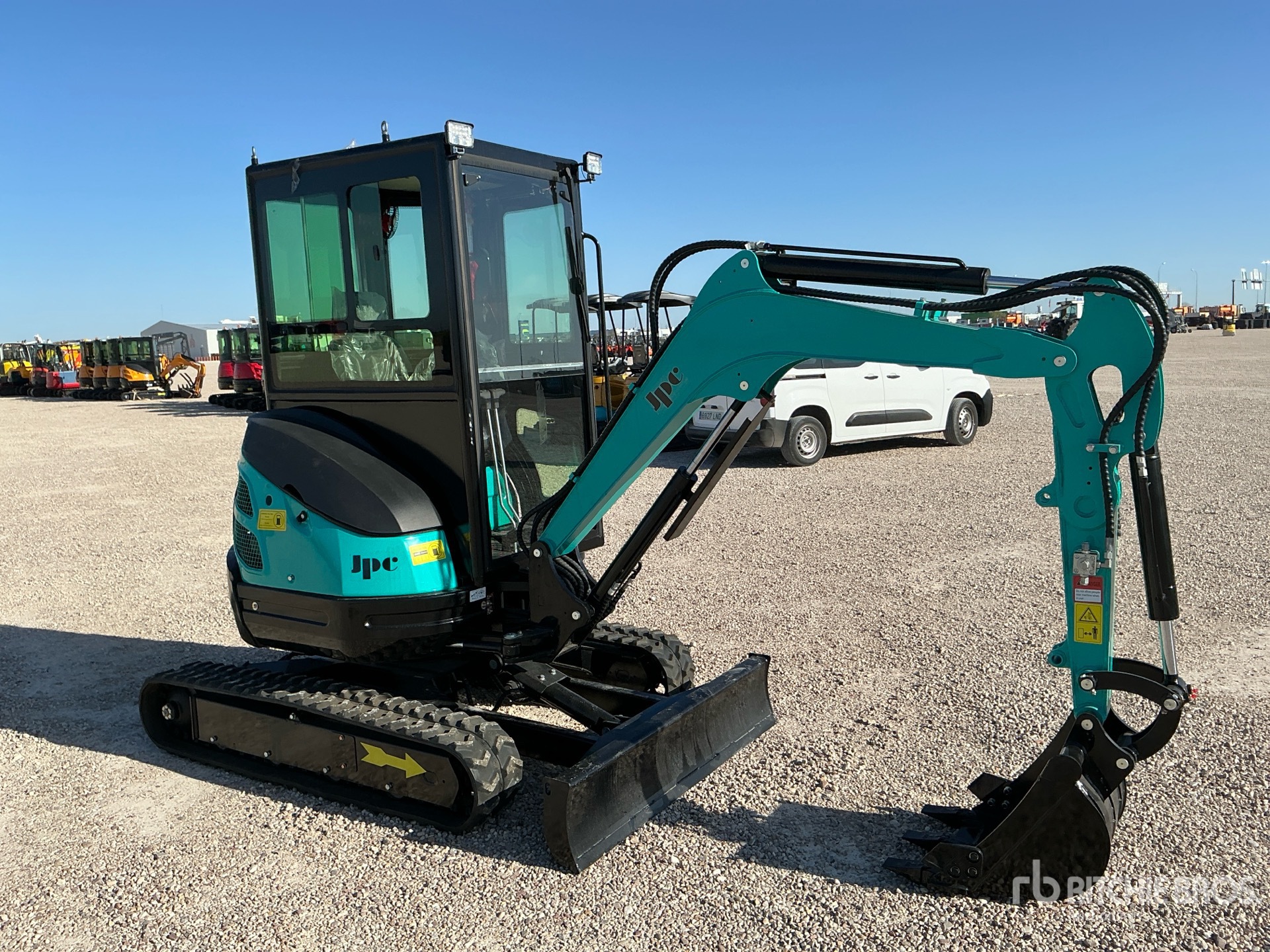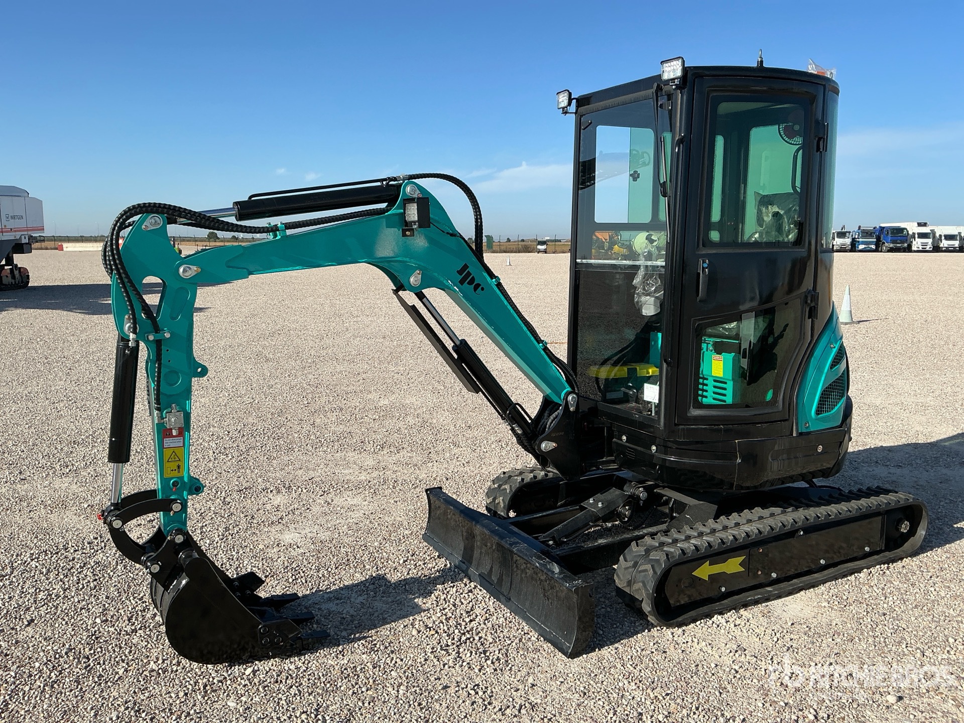 Enclosed Cab, Swing Boom, 980 mm Stick, Auxiliary Hydraulic Plumbing, Backfill Blade, 230 mm Rubber Tracks, 500 mm Digging Bucket