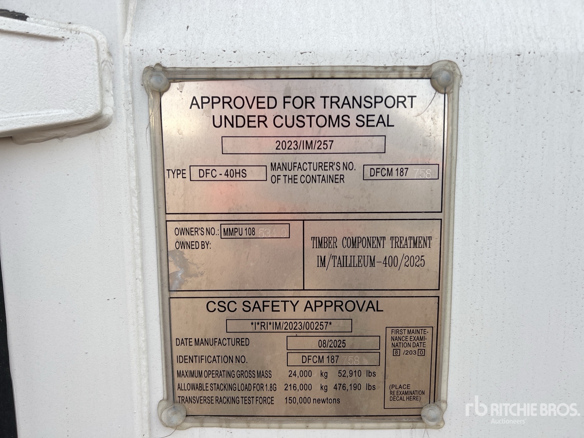 The detailed equipment information is limited in scope, and Ritchie Bros. Auctioneers has not inspected any aspects or components of the equipment other than those expressly set forth herein. Unless expressly stated, we make no representations or warranties, express or implied, concerning the equipment or its components, including without limitation any representations or warranties concerning functionality, conformity or compliance with any safety standard or requirement of any applicable authority or regulatory body, fitness for any particular purpose, or merchantability. You are strongly advised to perform your own detailed inspection of the equipment prior to bidding.