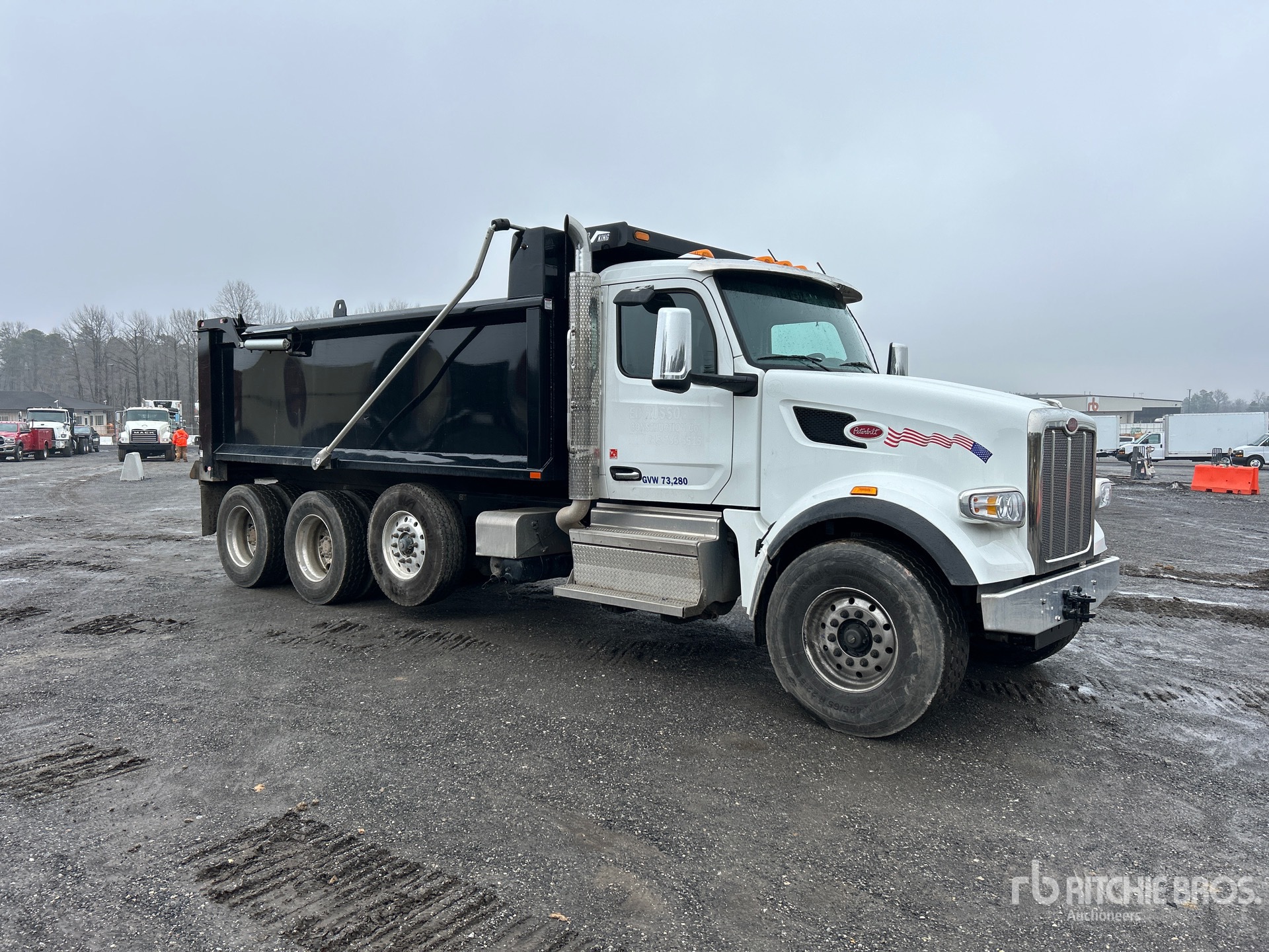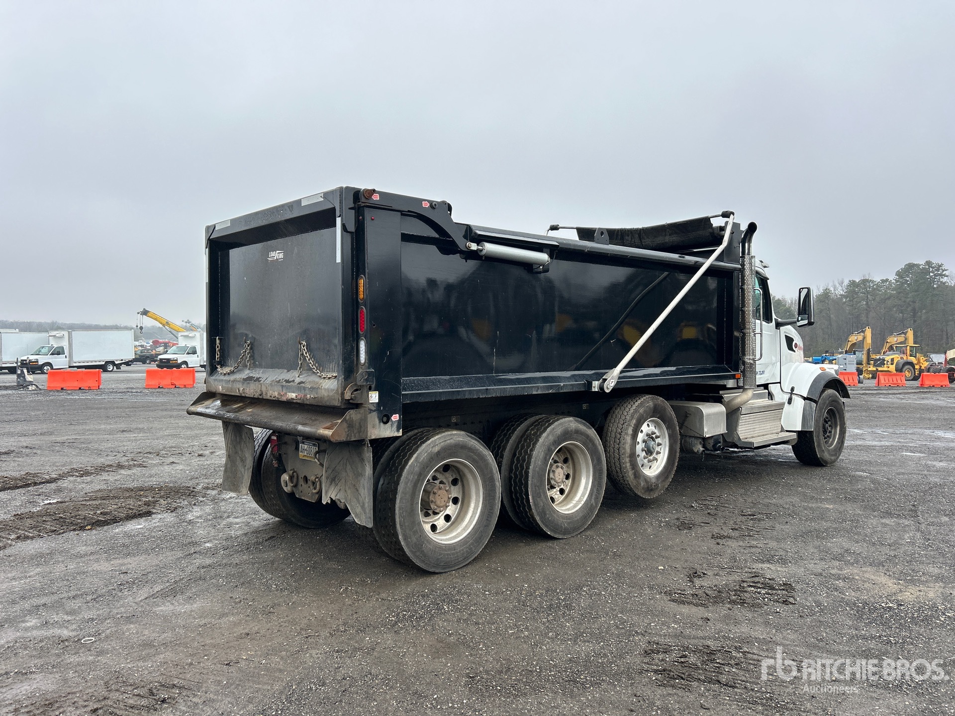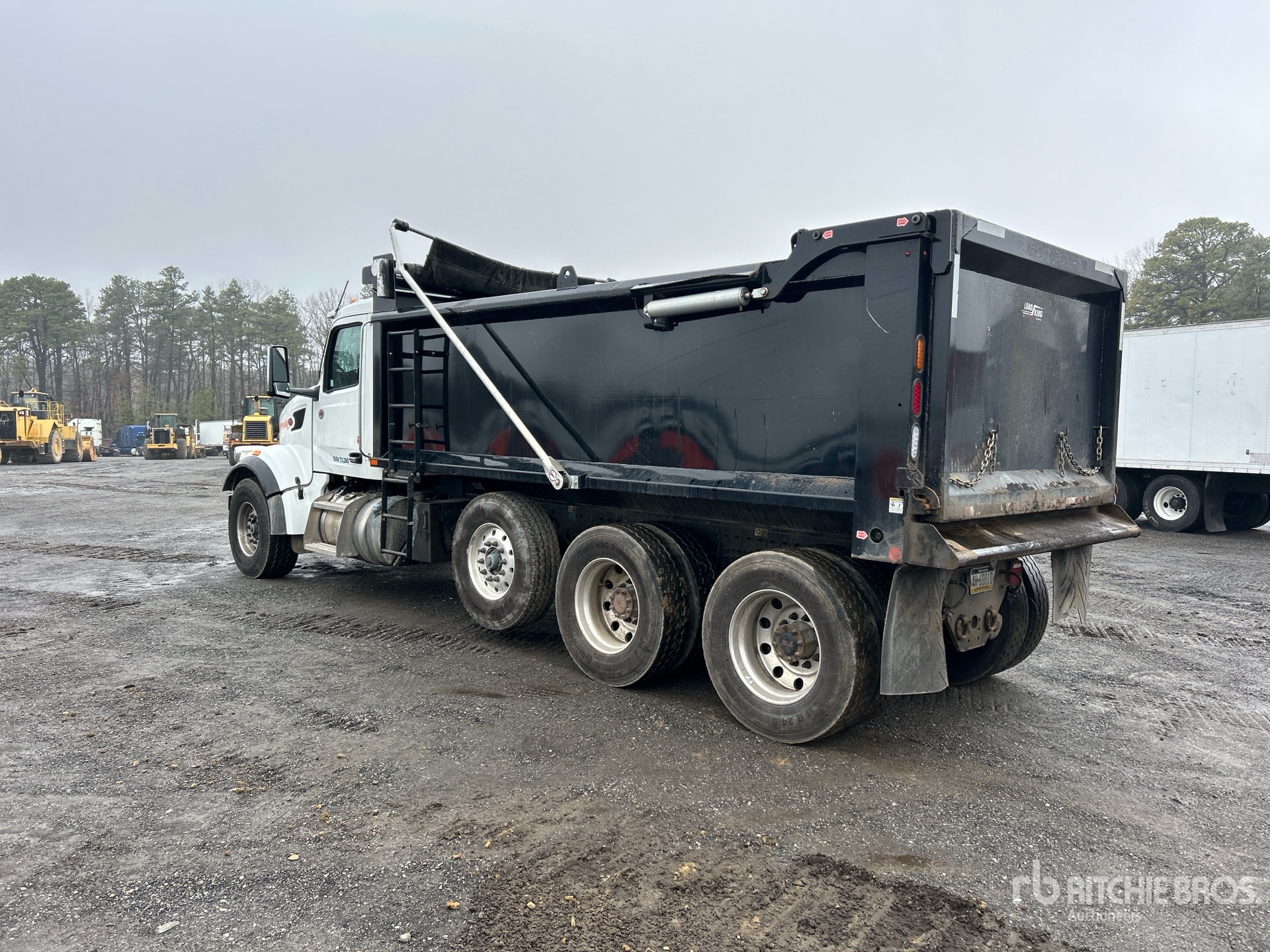 Located in Lane 44 Spot 1, Cummins X15 6 Cylinder Diesel Engine, 2024 US EPA Label, 1893 Engine hrs, Allison Automatic Transmission, 20000 lb Front Axle, 46000 lb Rears, 85000 lb GVWR, Aluminum Wheels, 425/65R22.5 Front Tires, 11R24.5 Rear Tires, Air Lift Pusher Axle, Hendrickson Haulmaax Suspension, 252 in Wheelbase, Load King 17 ft Long x 3 ft 9 in High Steel Body, Electric Roll Tarp, High-Lift Tailgate