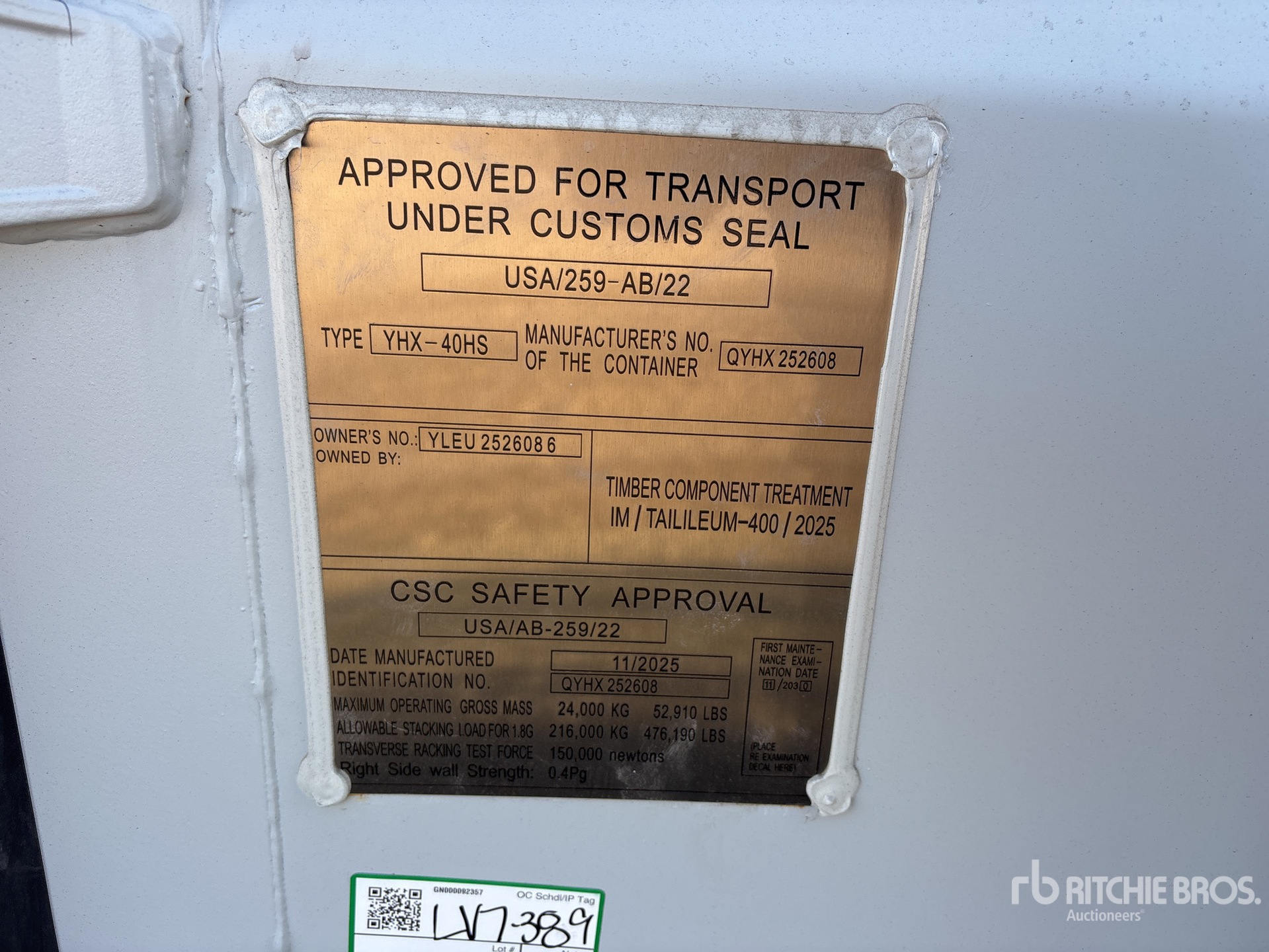 A qualified Ritchie Bros. employee collected detailed equipment information and performed functional tests on the key components of this asset. You, or a proxy, may also inspect any items on site prior to bidding on auction day.