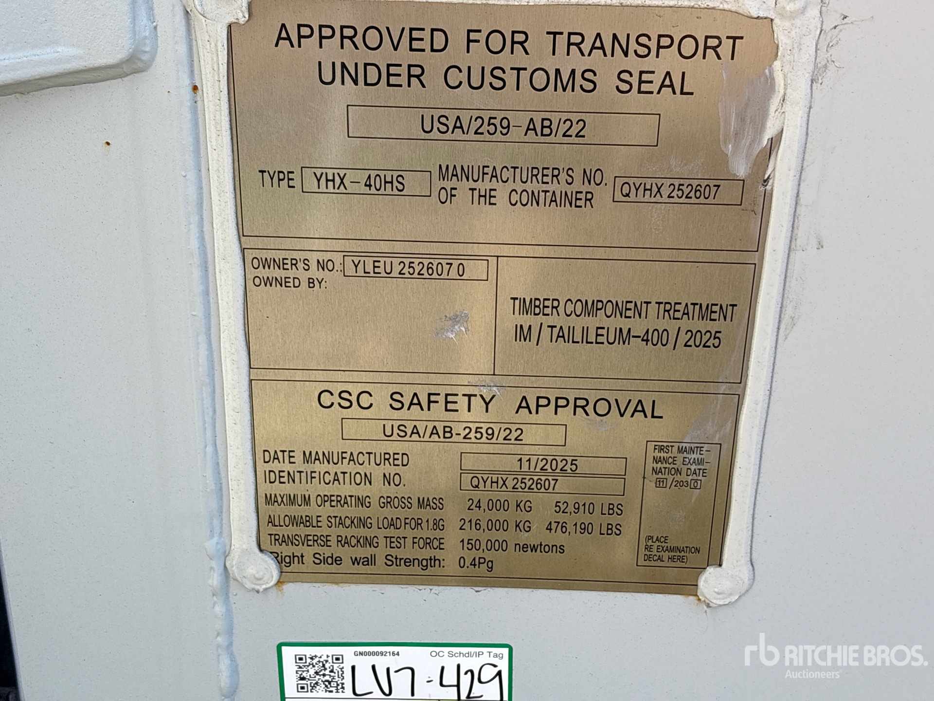 A qualified Ritchie Bros. employee collected detailed equipment information and performed functional tests on the key components of this asset. You, or a proxy, may also inspect any items on site prior to bidding on auction day.