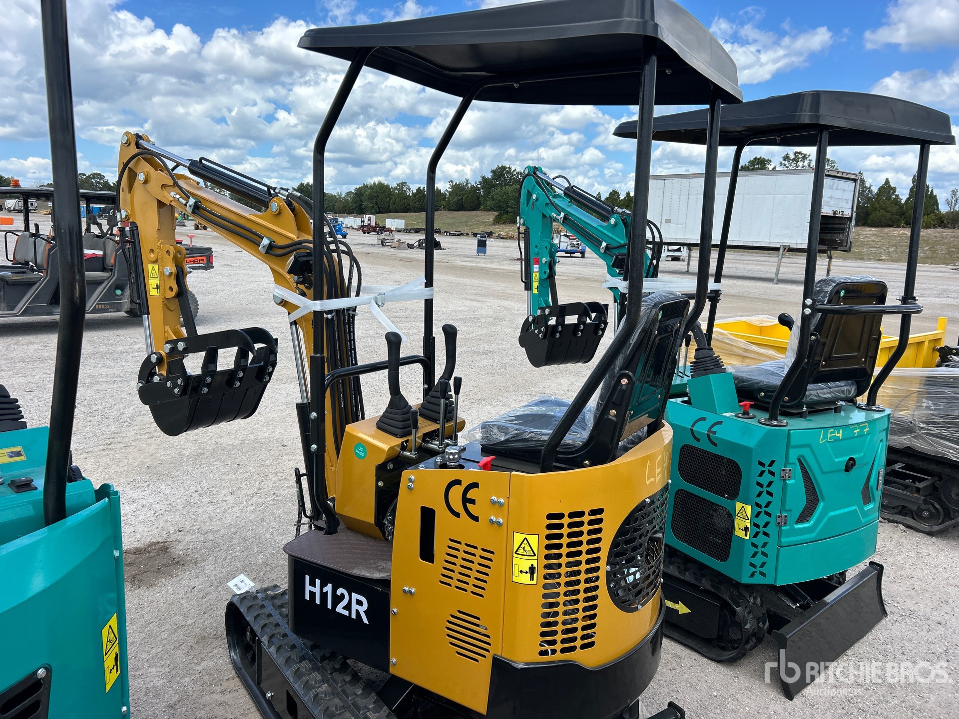 Located in Lane 112 Spot 2, 2026 US EPA Label, 2 ft 7 in Stick, Auxiliary Hydraulic Plumbing, Backfill Blade, 7 in Rubber Tracks, 16 in Digging Bucket, Manual Thumb
