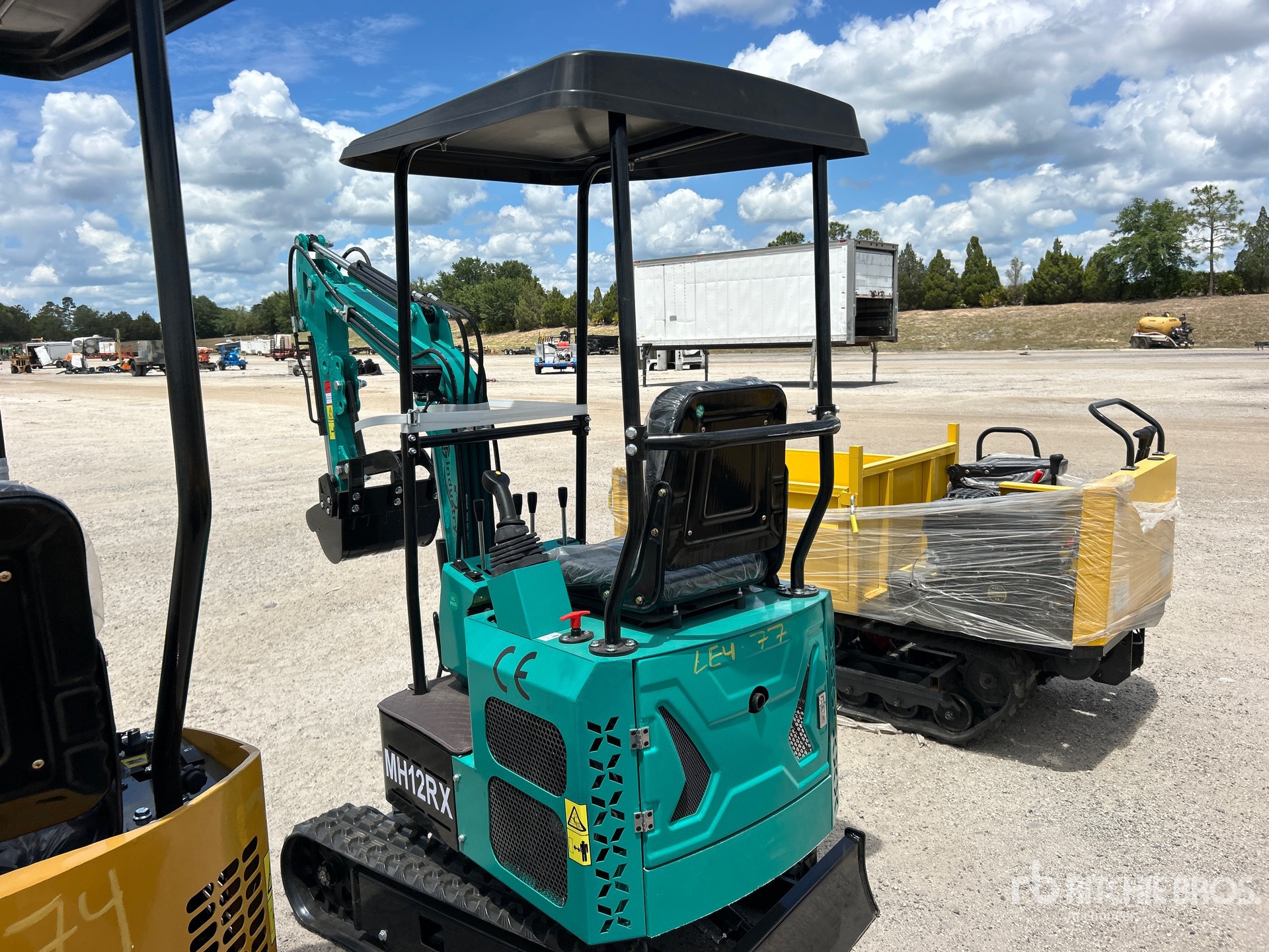 Located in Lane 112 Spot 2, 2025 US EPA Label, 2 ft 7 in Stick, Auxiliary Hydraulic Plumbing, Backfill Blade, 7 in Rubber Tracks, 16 in Digging Bucket, Manual Thumb