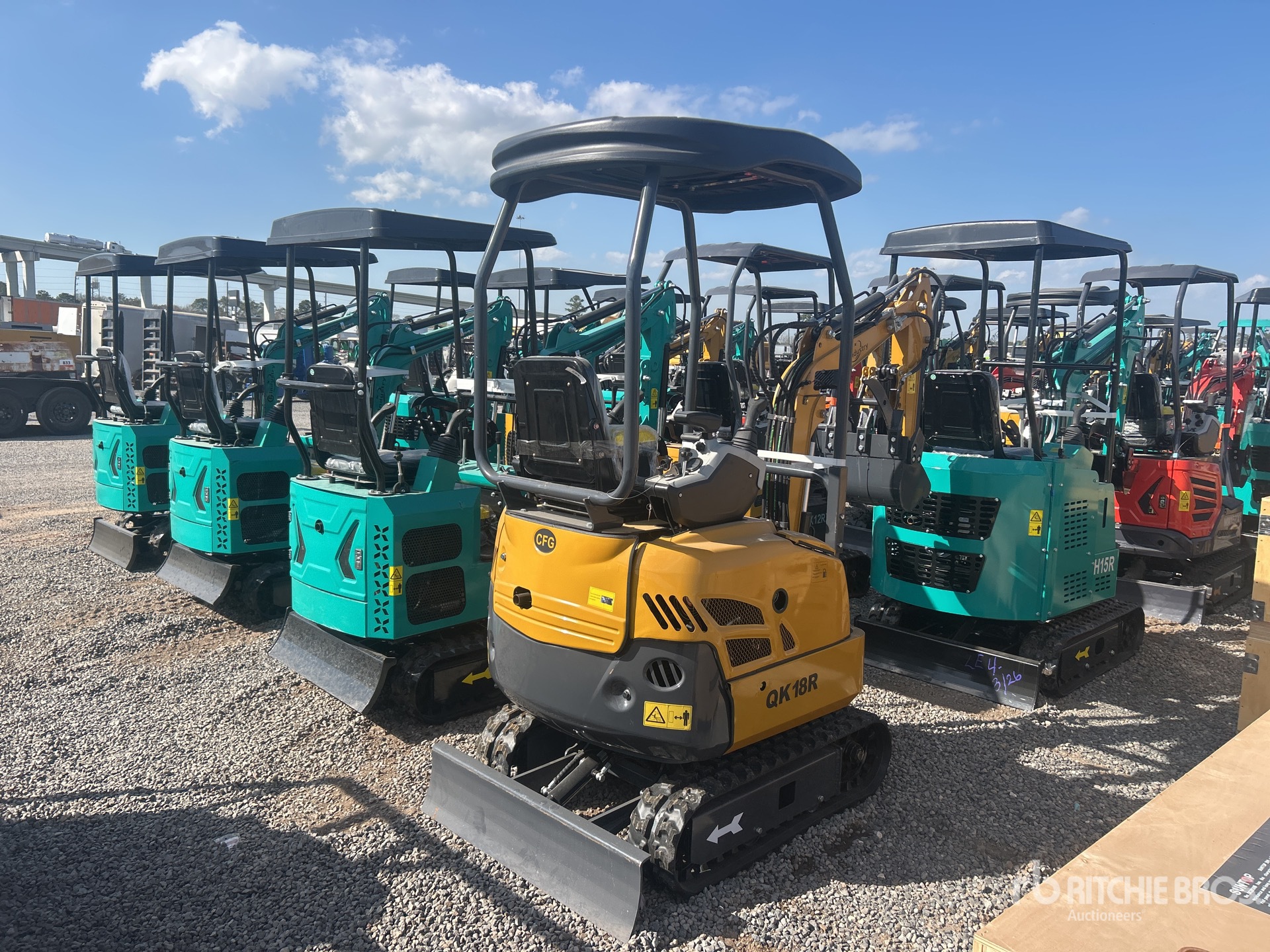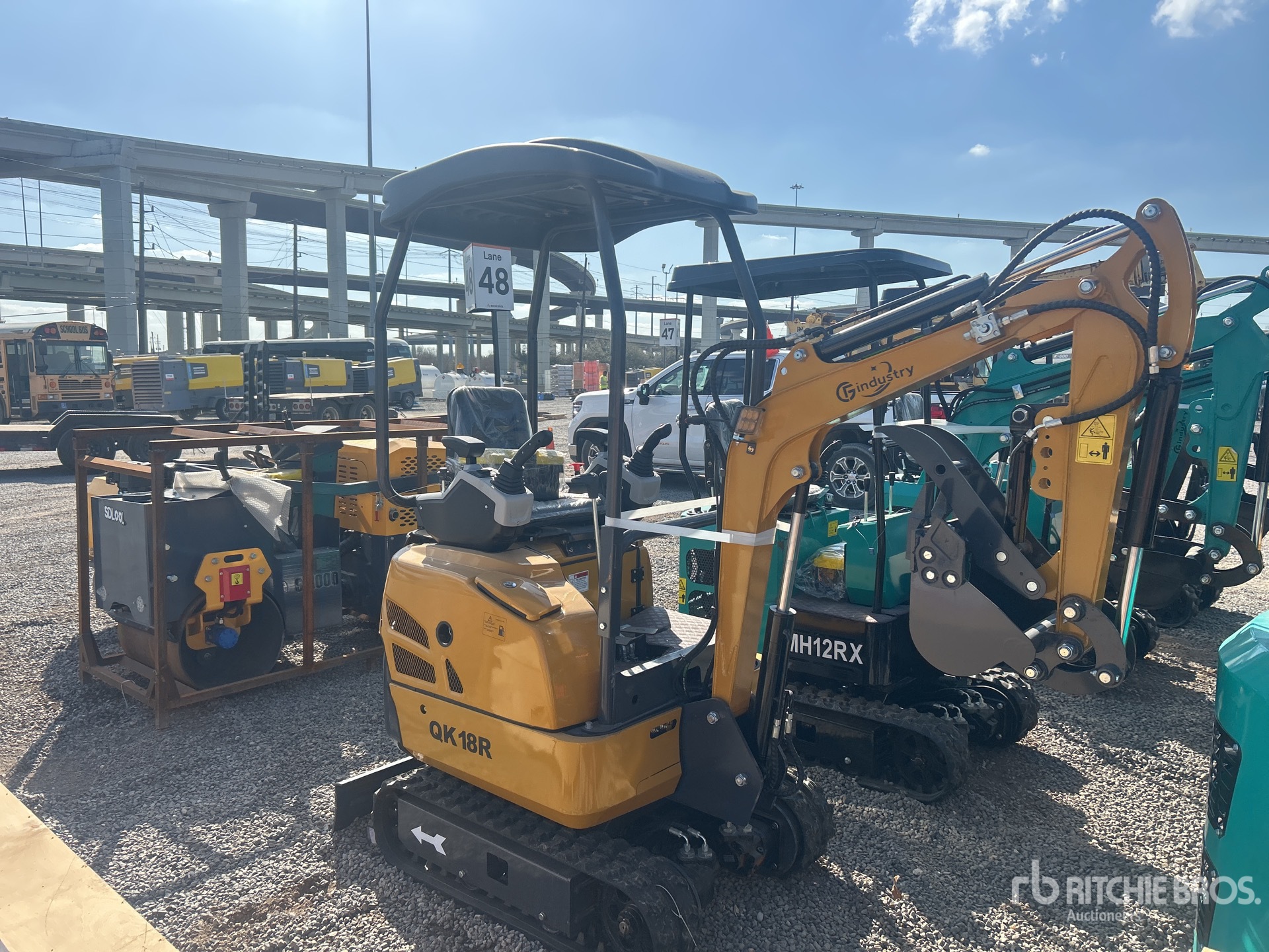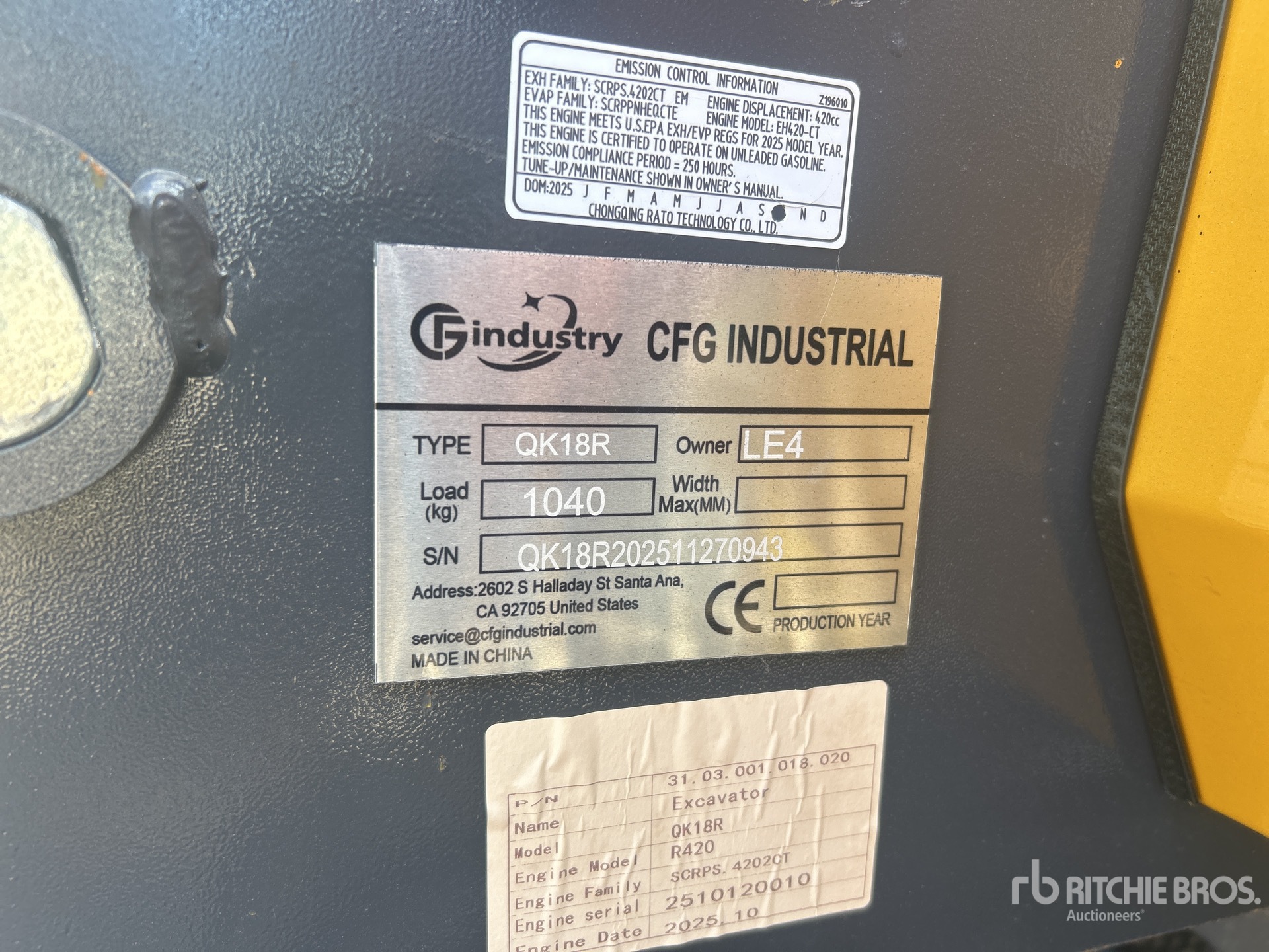 2025 US EPA Label, 2 ft 7 in Stick, Backfill Blade, 7 in Rubber Tracks, Manual Quick Coupler, 16 in Digging Bucket, Hydraulic Thumb