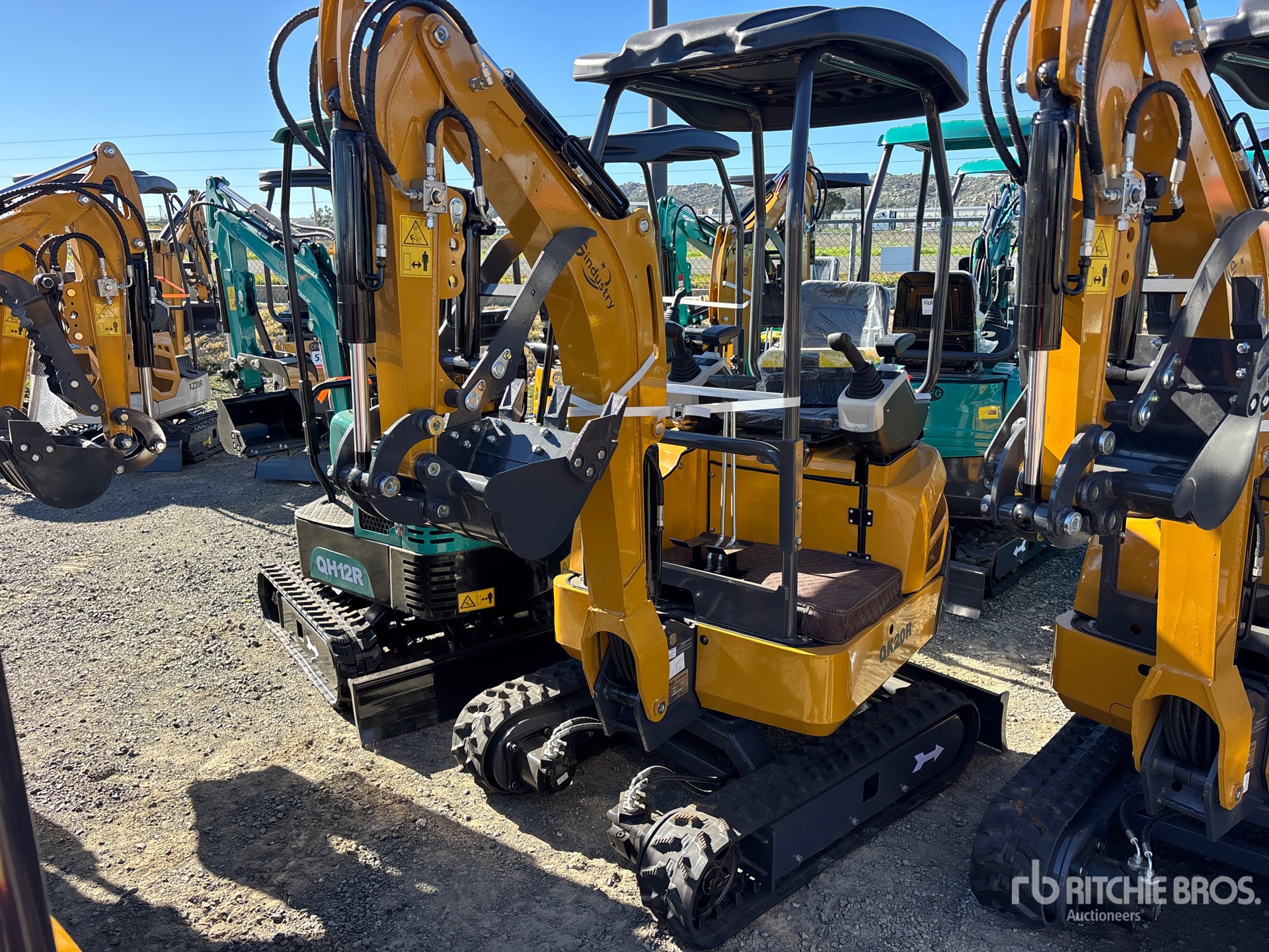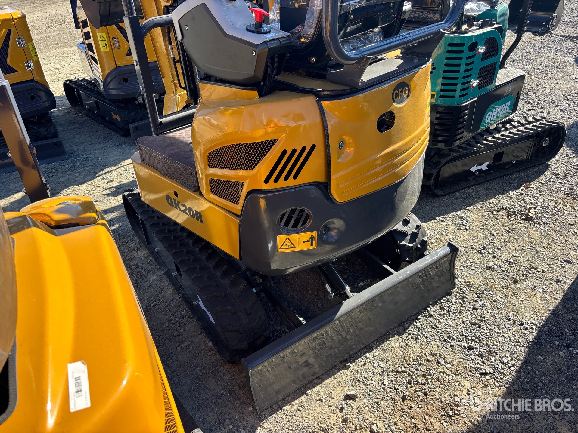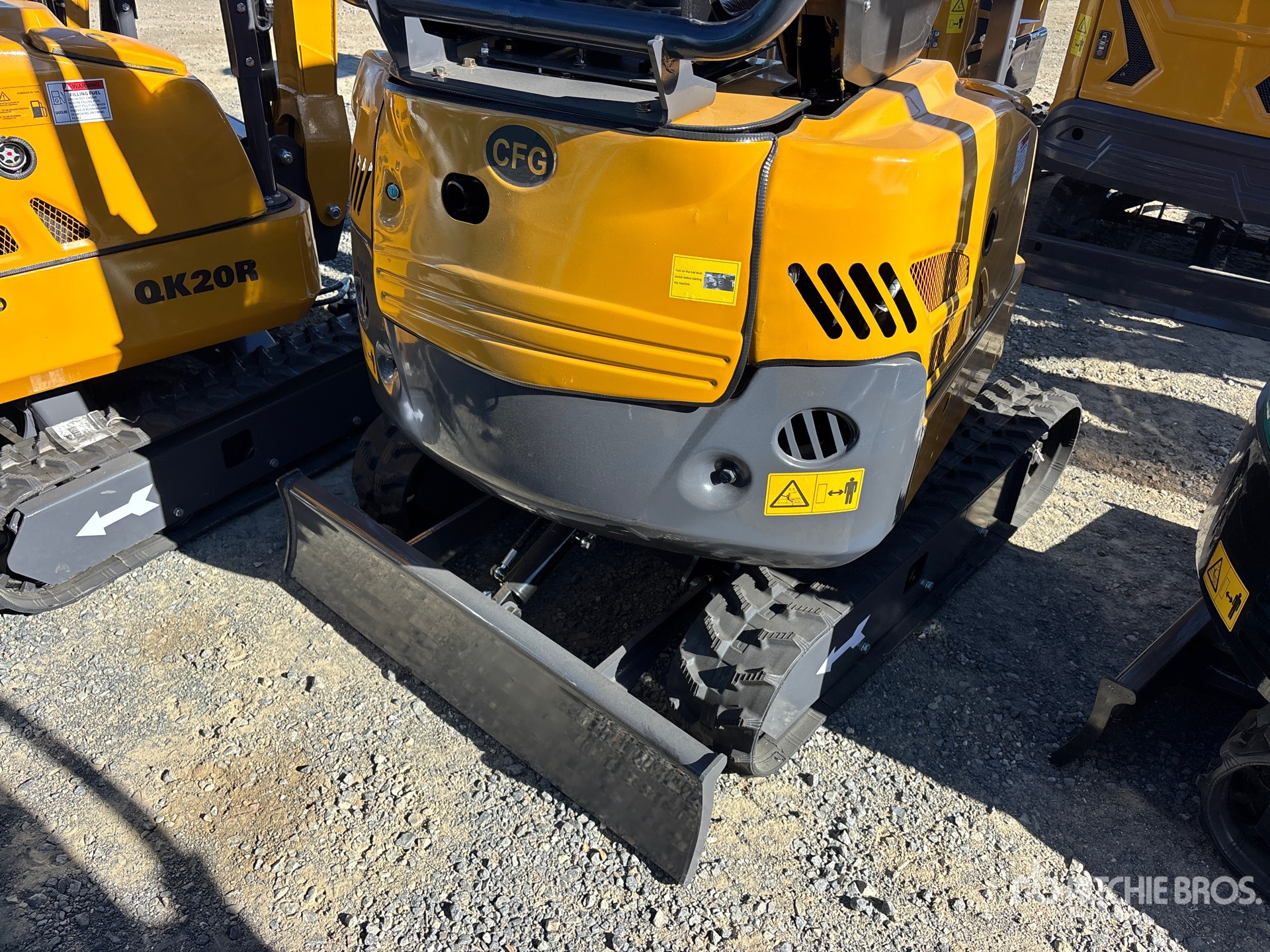 2 ft 7 in Stick, Auxiliary Hydraulic Plumbing, Backfill Blade, 7 in Rubber Tracks, Manual Quick Coupler, 14 in Digging Bucket