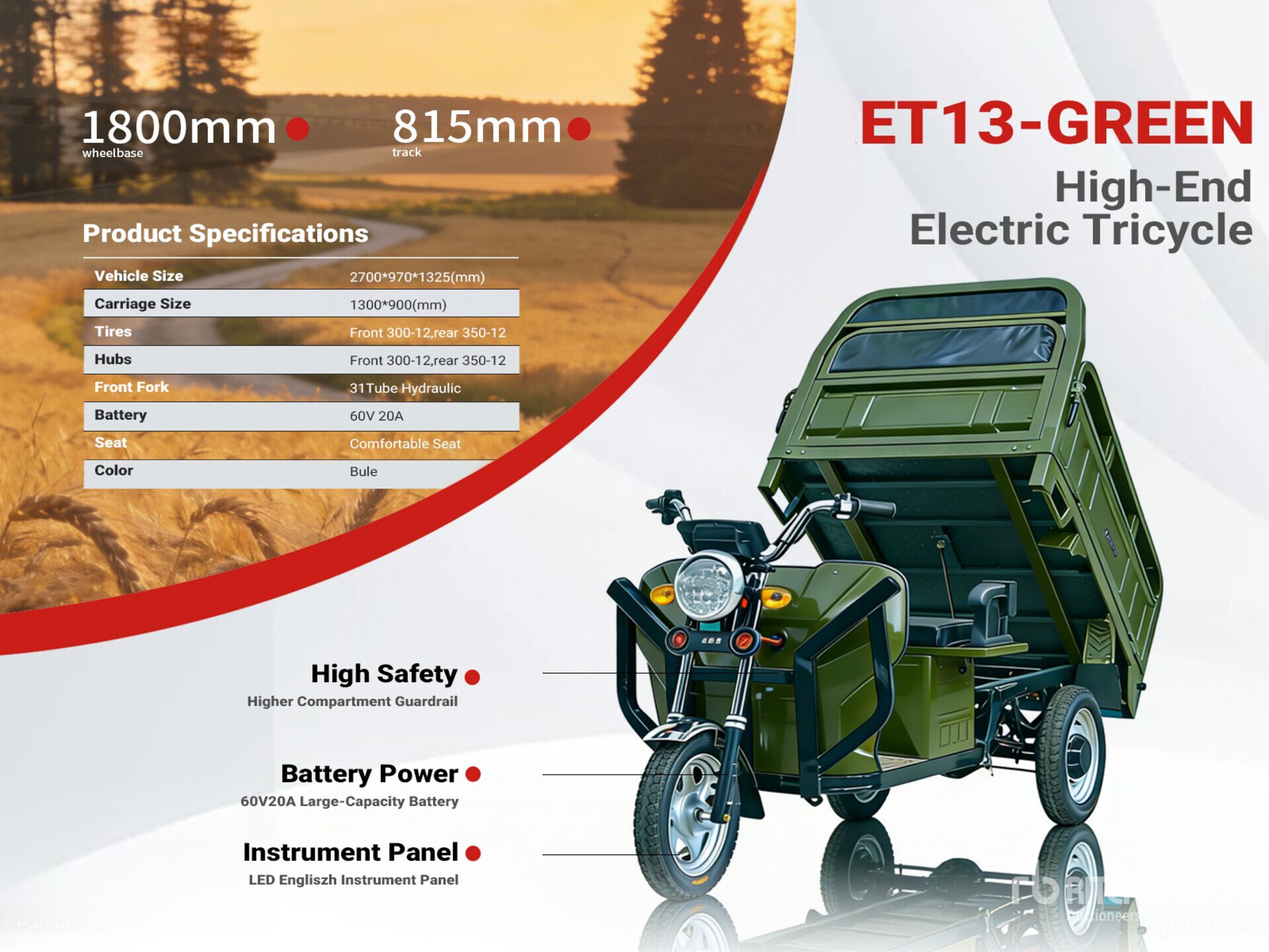 2026 ET13-GREEN 3 TT E-Trike Mini Scooter (Unused)