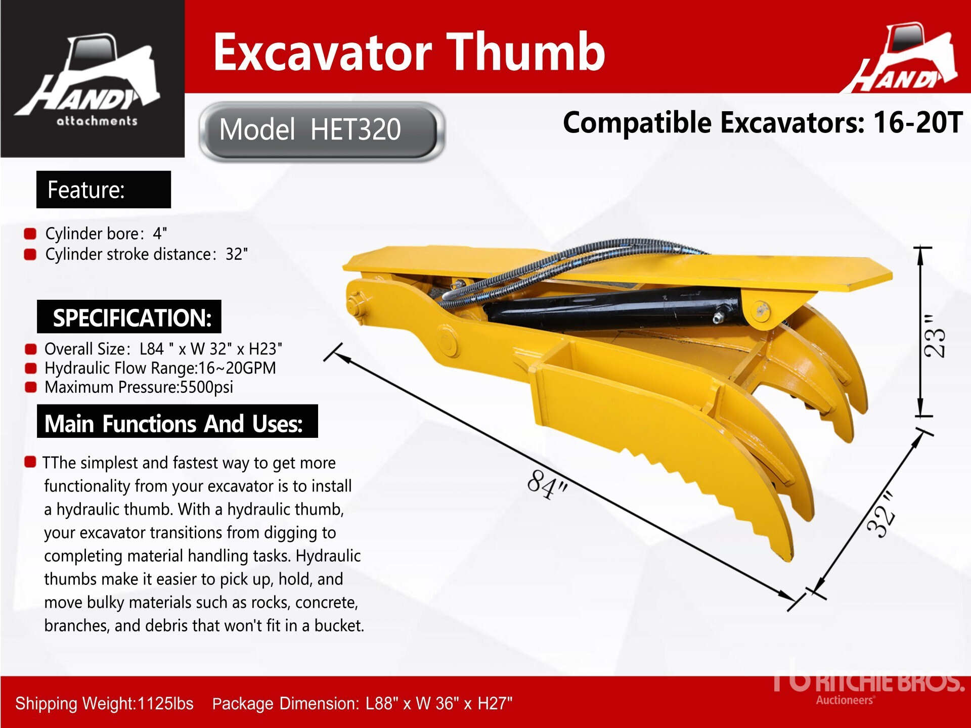 The detailed equipment information is limited in scope, and Ritchie Bros. Auctioneers has not inspected any aspects or components of the equipment other than those expressly set forth herein. Unless expressly stated, we make no representations or warranties, express or implied, concerning the equipment or its components, including without limitation any representations or warranties concerning functionality, conformity or compliance with any safety standard or requirement of any applicable authority or regulatory body, fitness for any particular purpose, or merchantability. You are strongly advised to perform your own detailed inspection of the equipment prior to bidding.