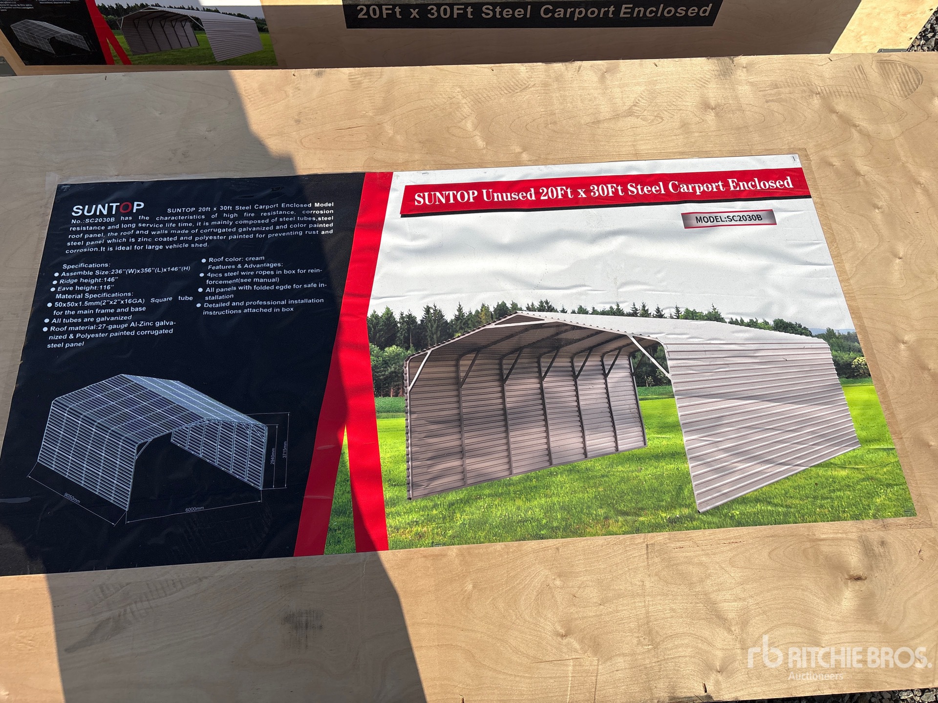 2026 SUNTOP S2030B 3 ft 4 in x 7 ft 4 in 20ft x 30ft Steel Carport Enclosed Carport (Unused)