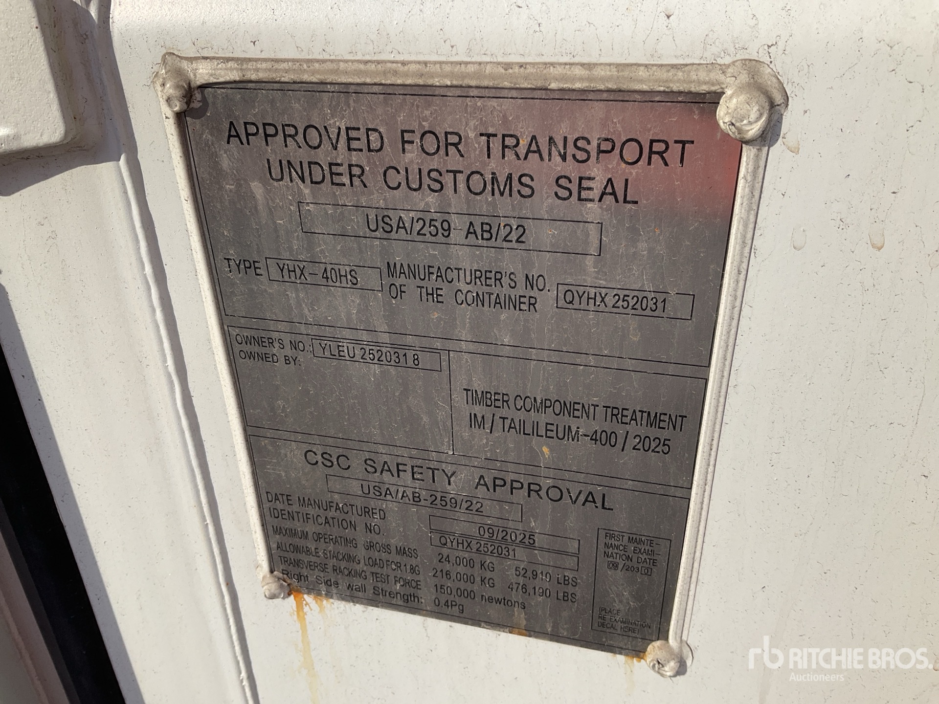 A qualified Ritchie Bros. employee collected detailed equipment information and performed functional tests on the key components of this asset. You, or a proxy, may also inspect any items on site prior to bidding on auction day.