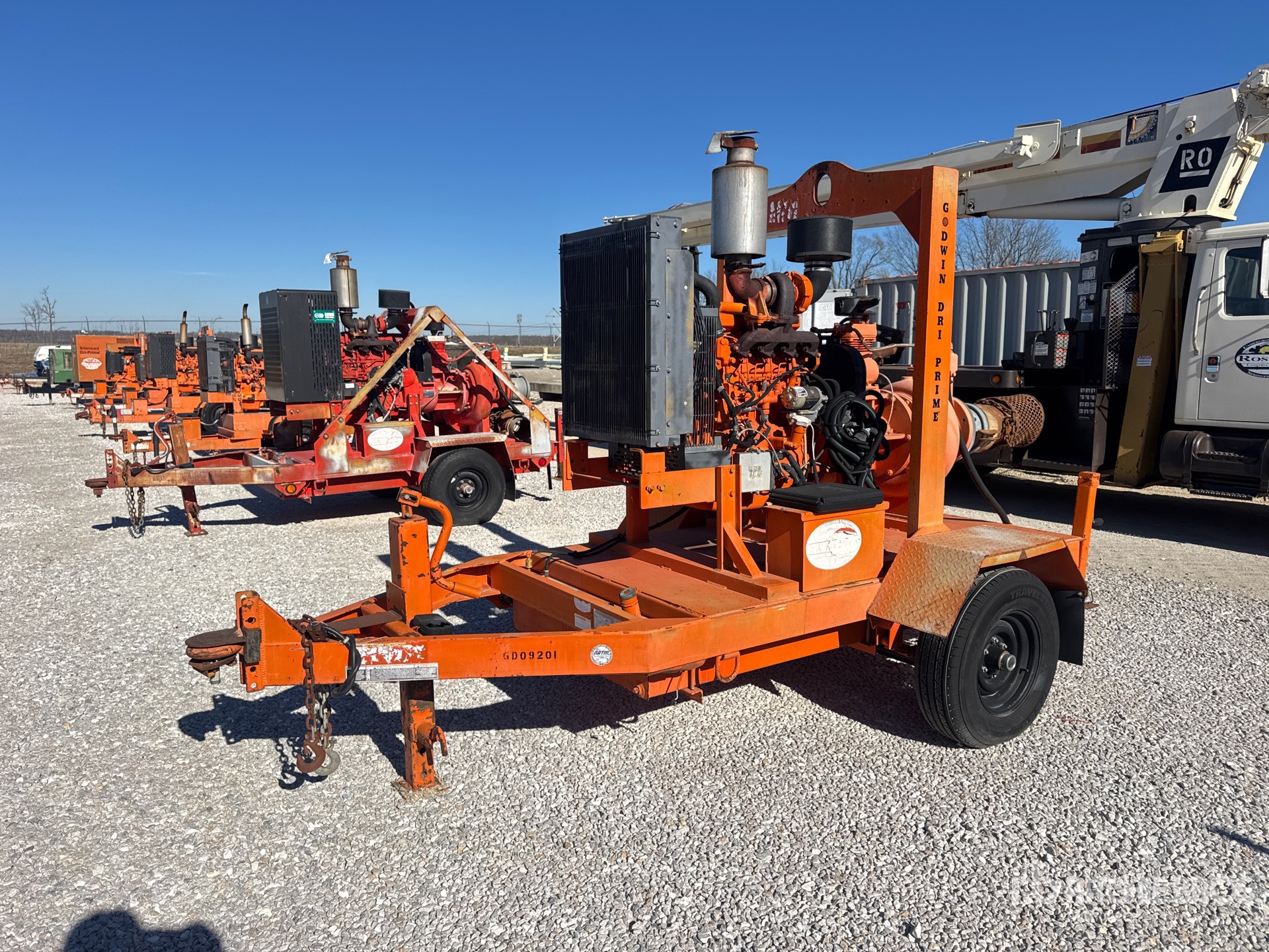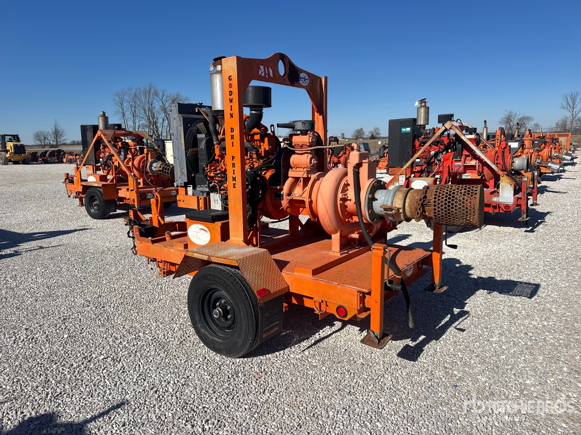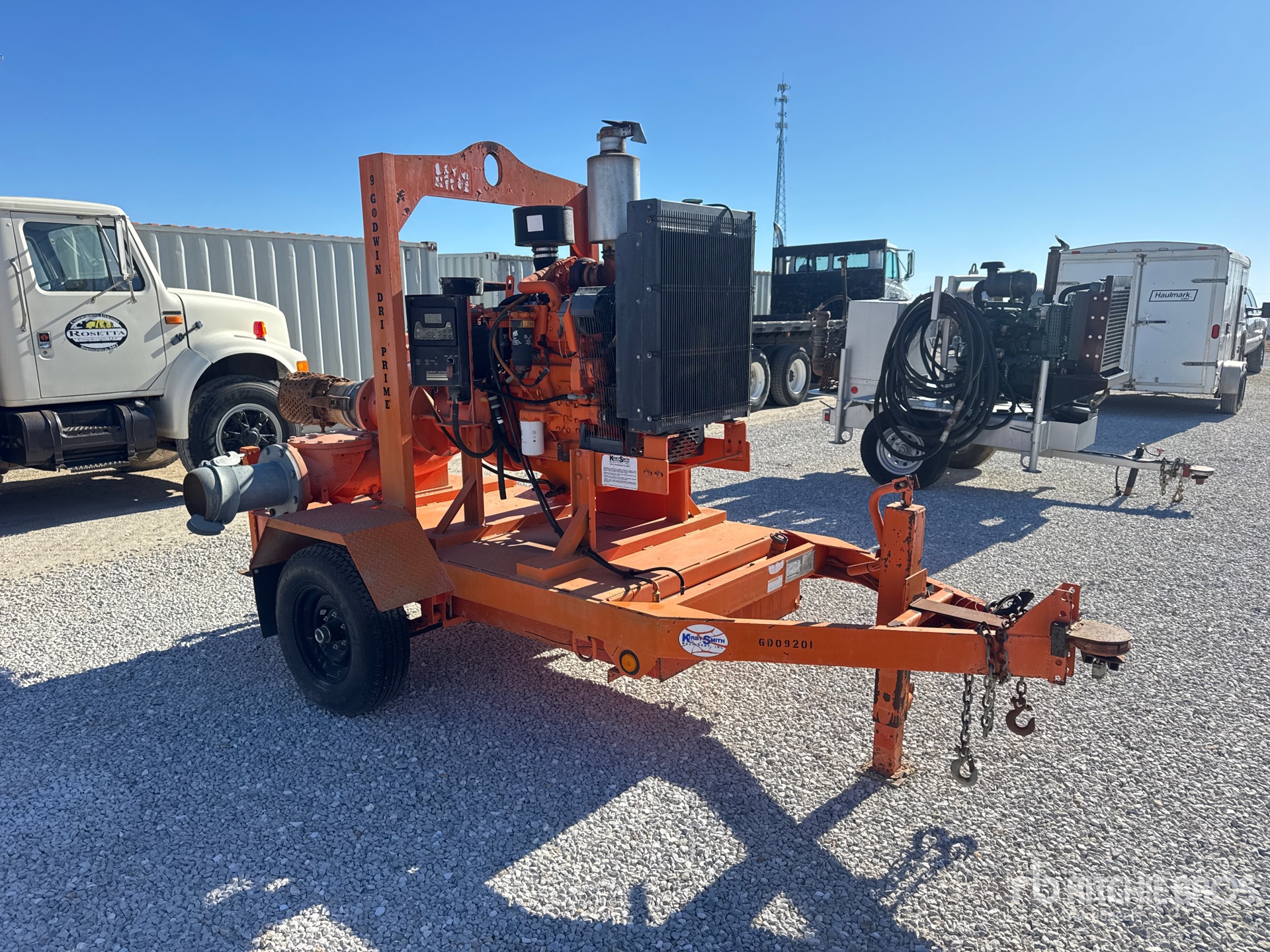 9 in Intake, 8 in Discharge, Centrifugal Water Pump, 2008 US EPA Label, John Deere 4045TF285B,C,D 4 Cylinder 4.5 L Diesel Engine, Lunette Ring Carrier Trailer, Electric Brakes
