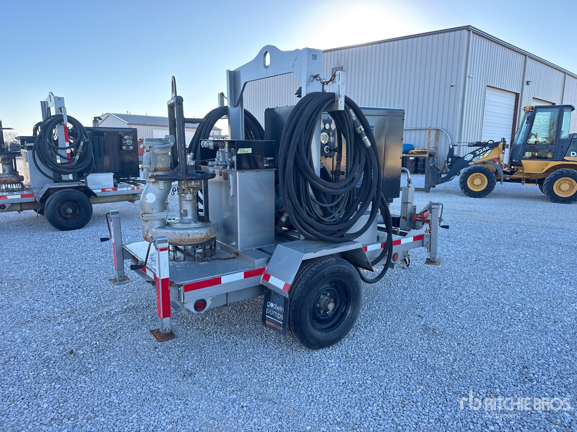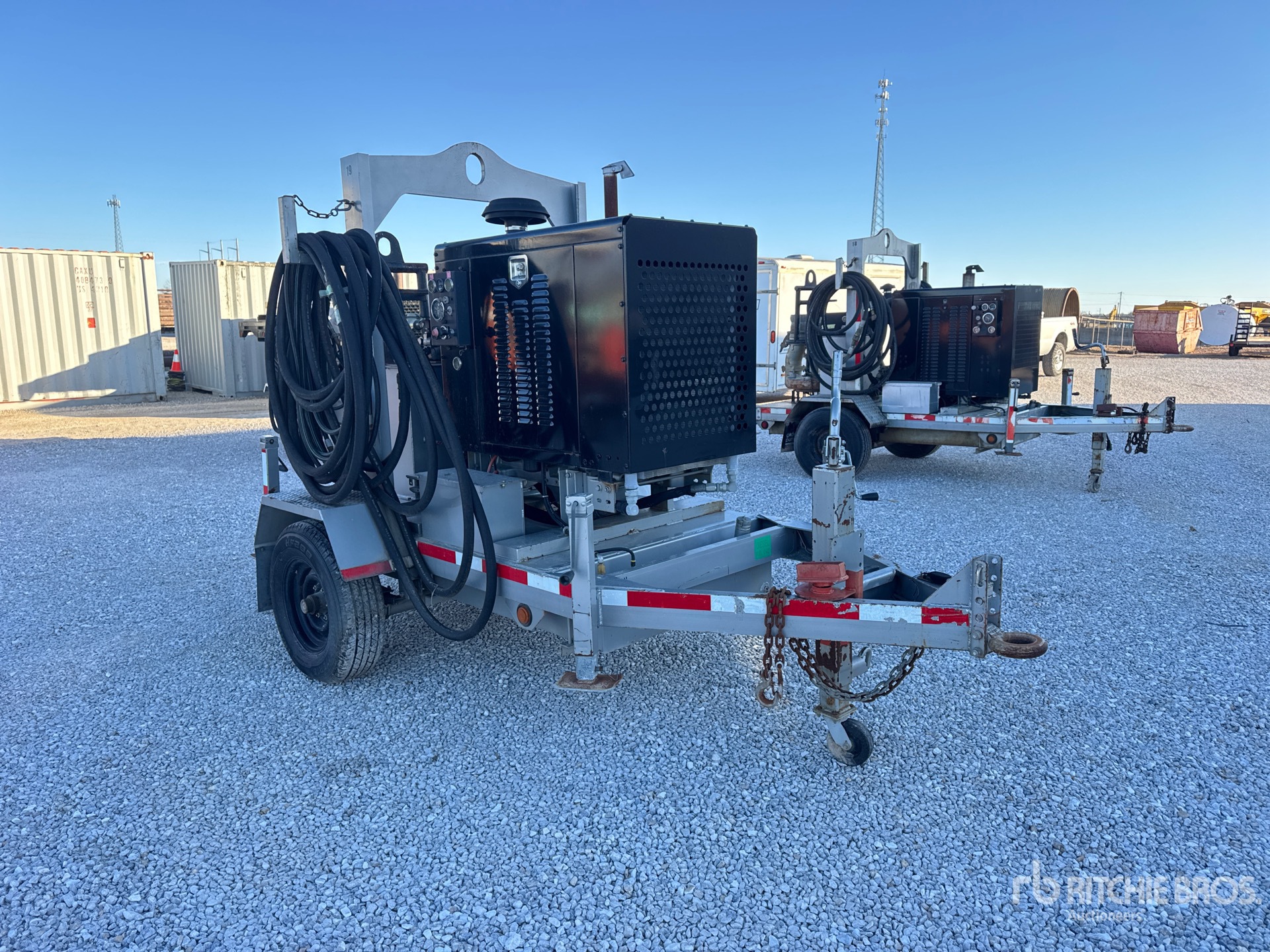 6 in Intake, Centrifugal 2000 US EPA Label, John Deere 4045DF150B 4 Cylinder 4.5 L Diesel Engine, Lunette Ring Carrier Trailer, Electric Brakes