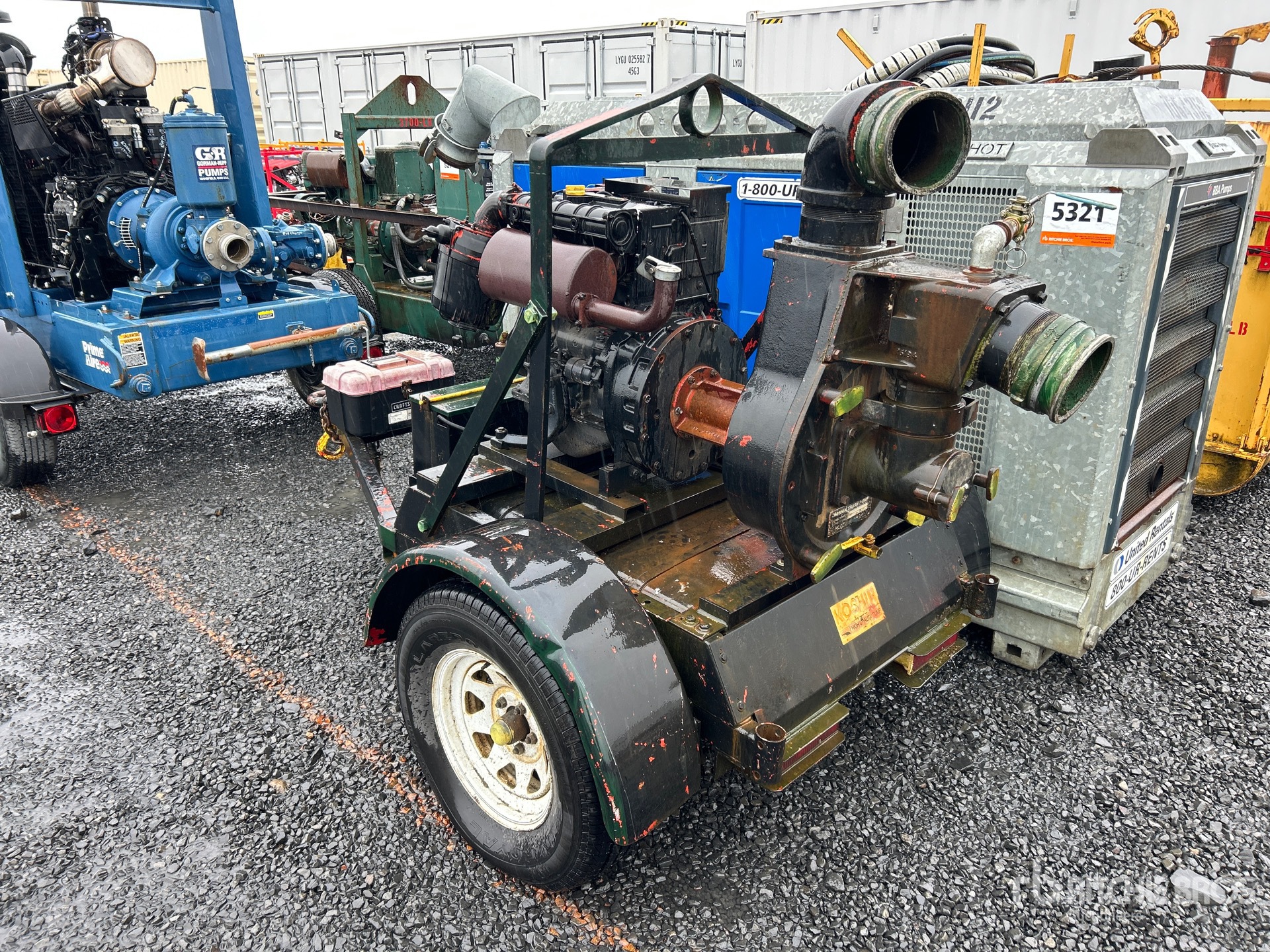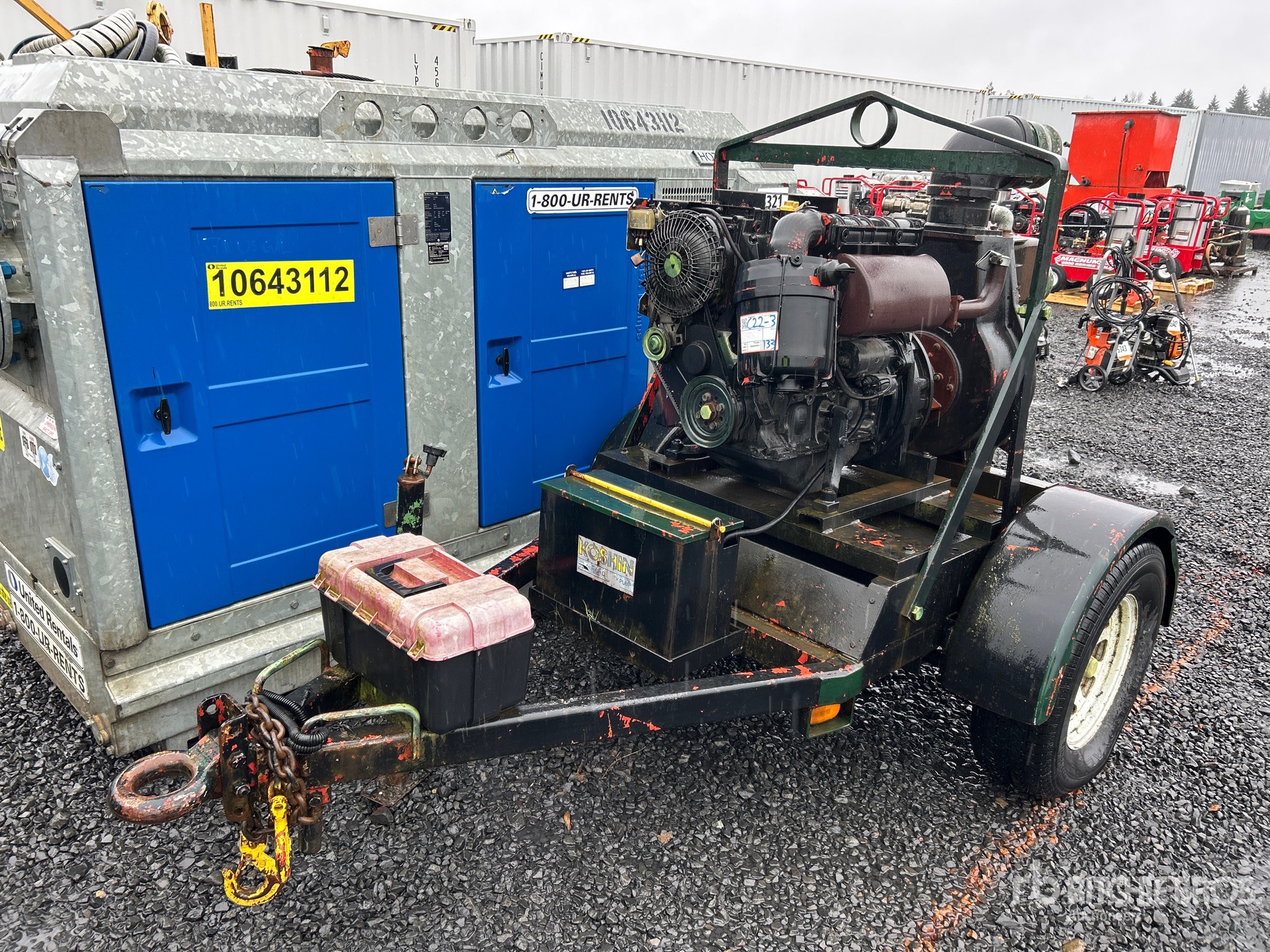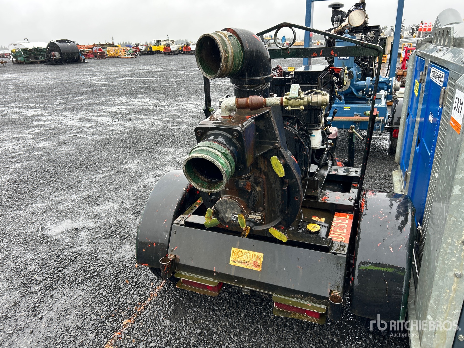 6 in Intake, 6 in Discharge, Centrifugal Trash Pump, Deutz F3L1011F 3 Cylinder 30 kW Diesel Engine, Lunette Ring Carrier Trailer