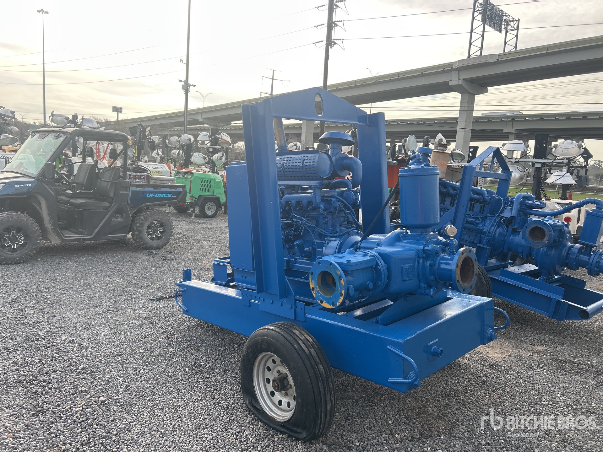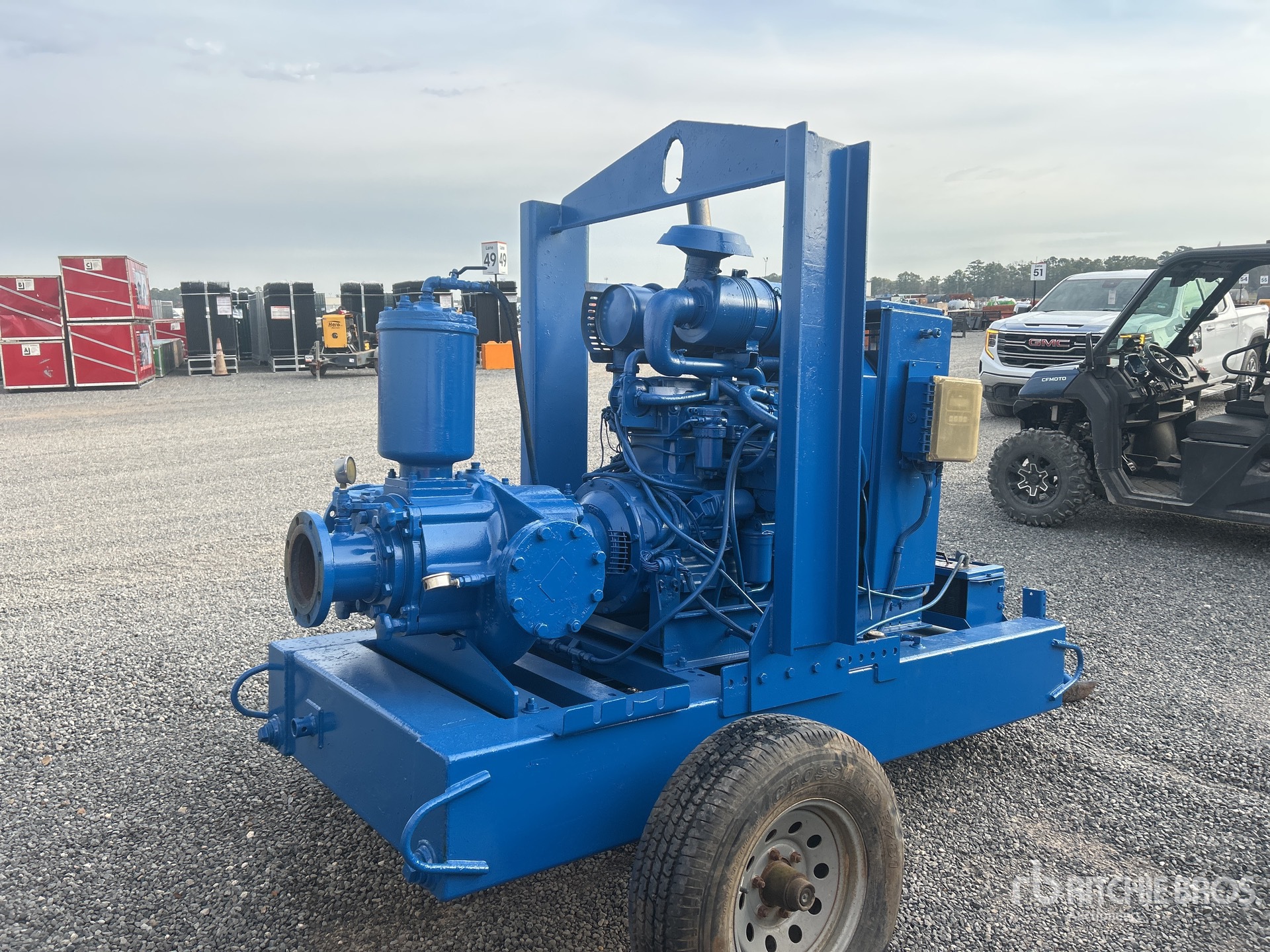 6 in Intake, 6 in Discharge, Centrifugal Water Pump, John Deere 4 Cylinder Diesel Engine, Lunette Ring Carrier Trailer