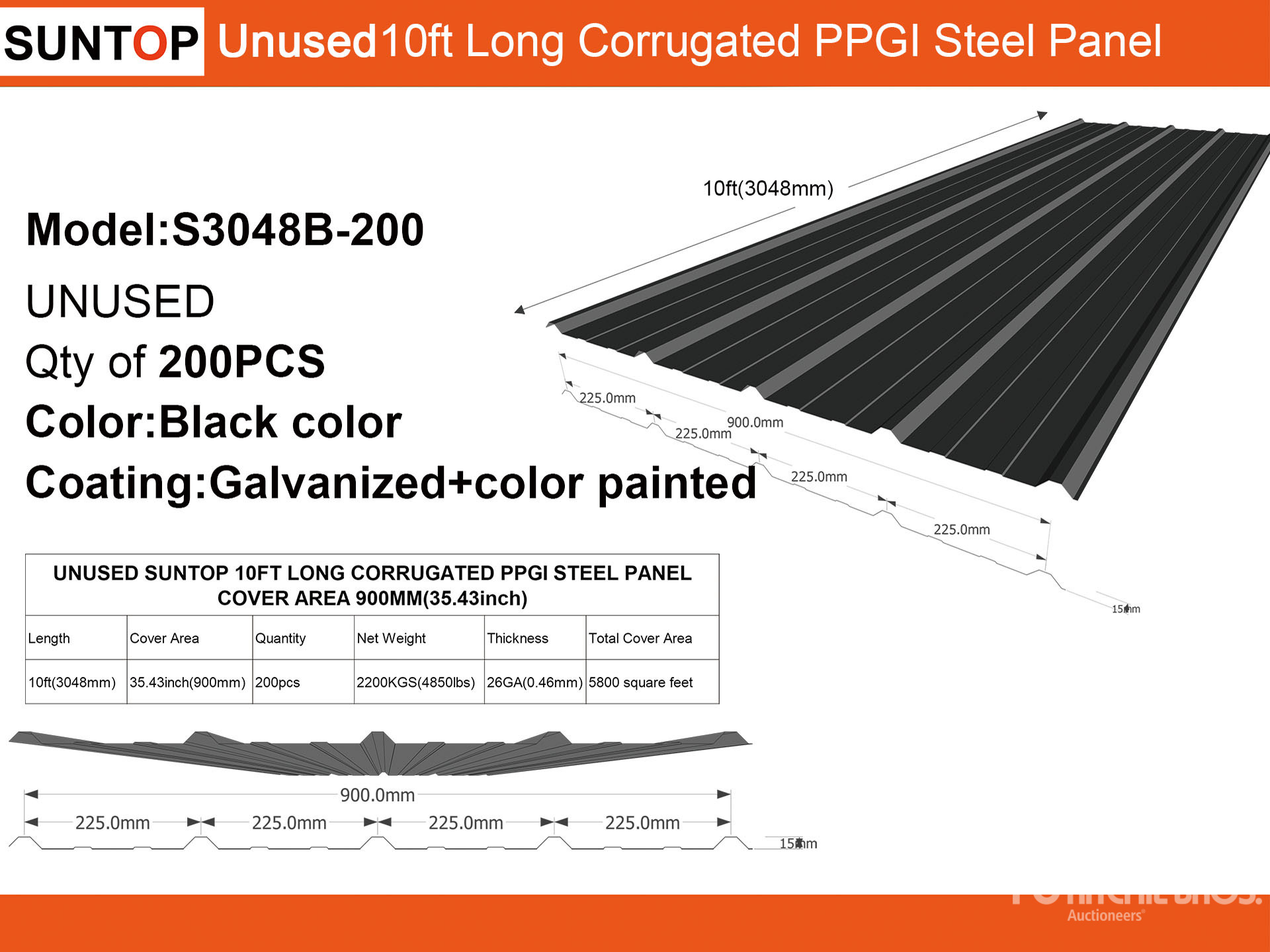 Quantity of (200) 2026 SUNTOP S3048B-200 35 in x 10 ft Corrugated PPGI Steel Panel (Unused)