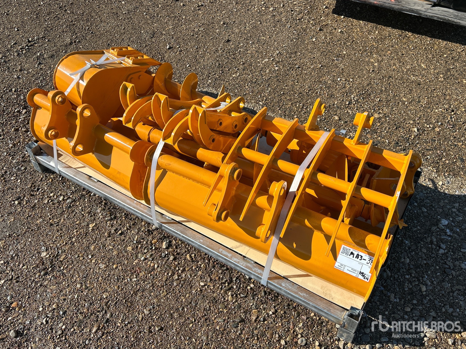 (1) 8 in Bucket, (1) 23 in Bucket, (1) 31 in Bucket, (1) Grapple, (1) Rake, (1) Auger, (1) 8 in Bit, (1) 12 in Bit, (1) Ripper