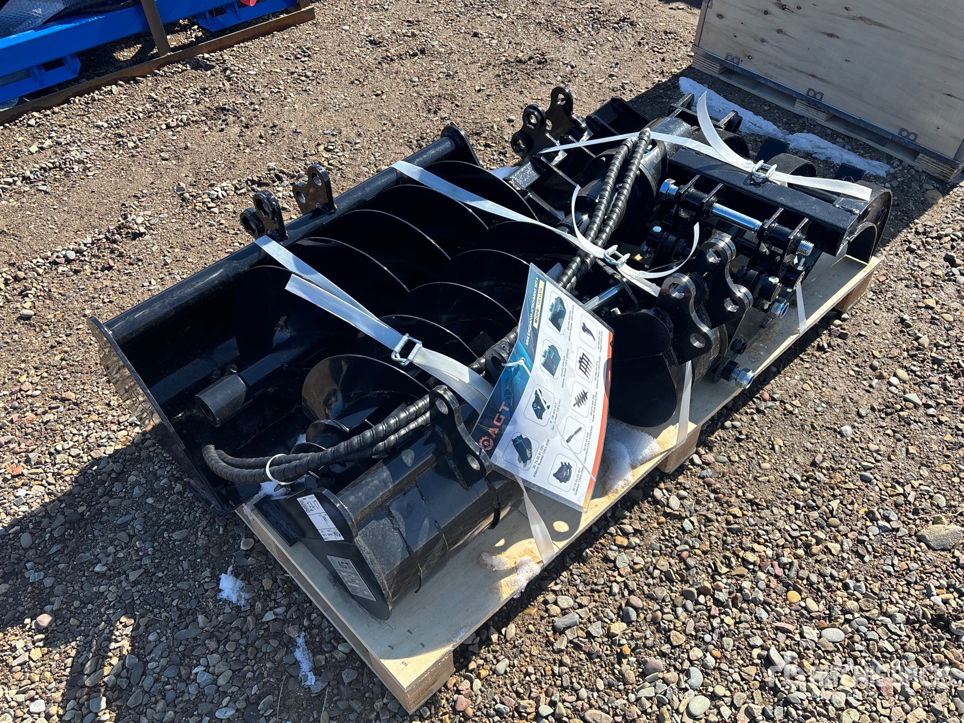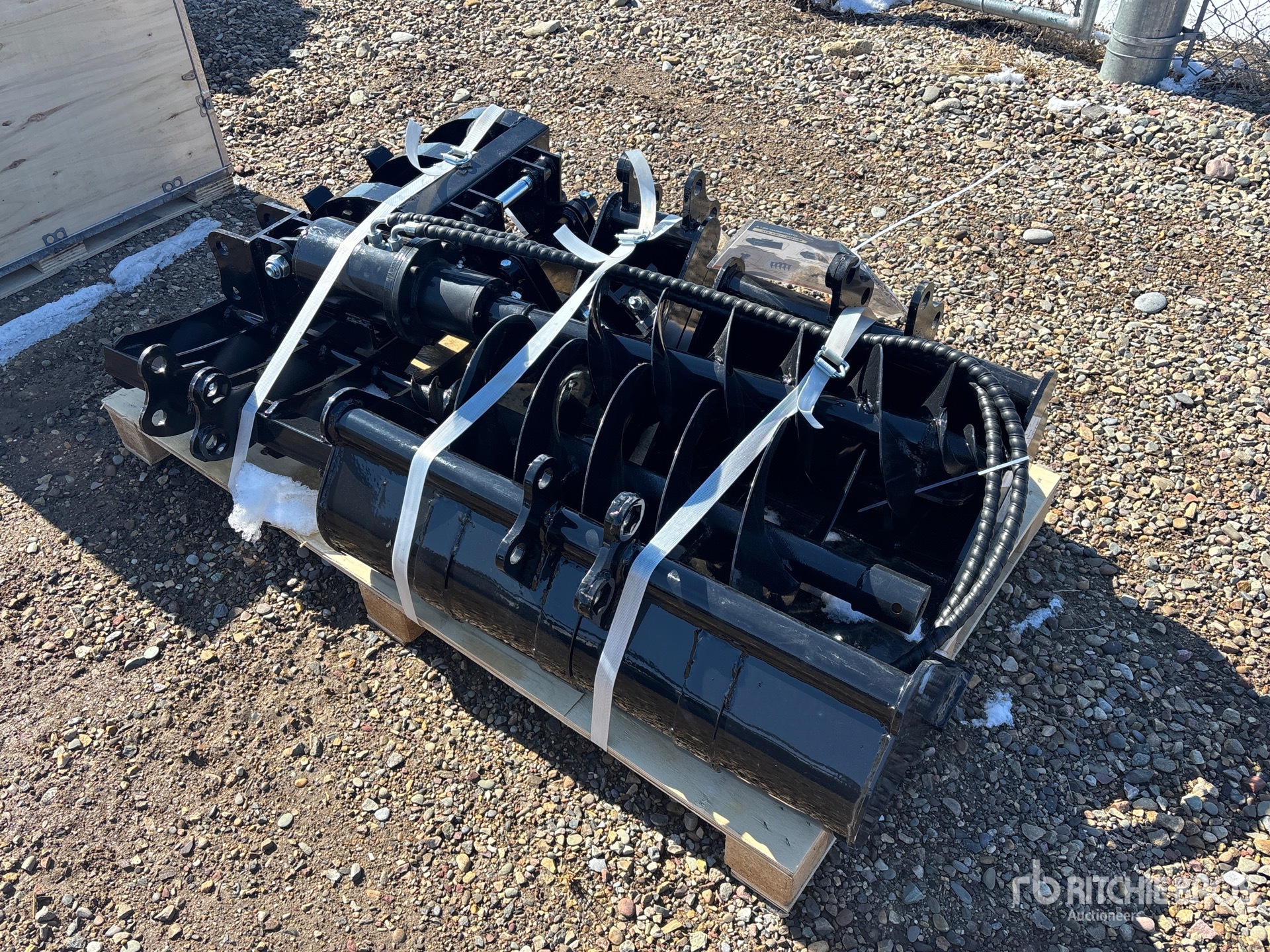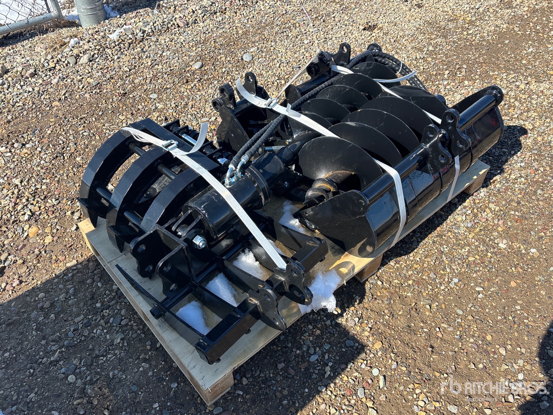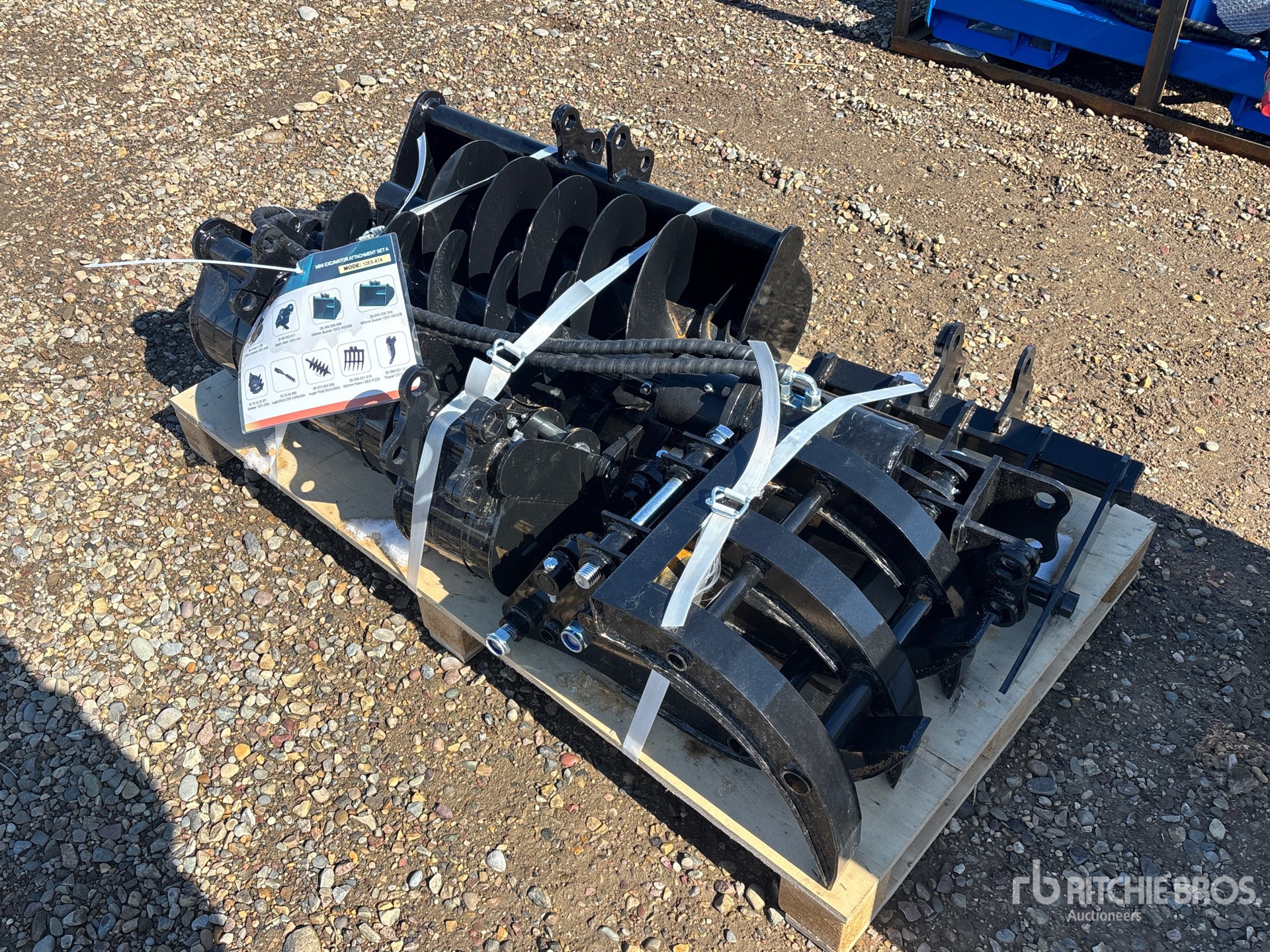 (1) 8 in Bucket, (1) 20 in Bucket, (1) 32 in Bucket, (1) Quick Coupler, (1) Ripper, (1) Grapple, (1) Rake, (1) 8 in Auger, (1) 12 in Auger, Product images displayed are stock photos. Item is new/unused.